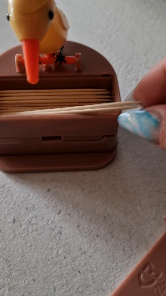 Nice but with the base the bird couldn t pick the toothpick so i removed the geeen base.