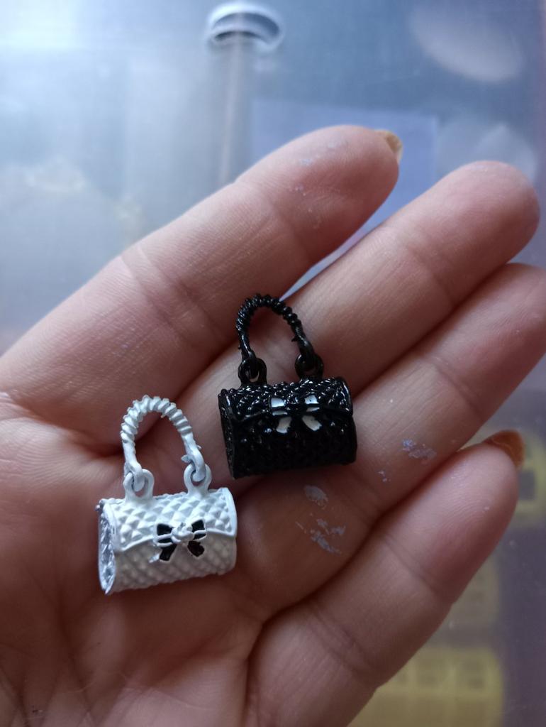 Metal mini handbags, they look good. Like in the palm of a barbie (see photo)