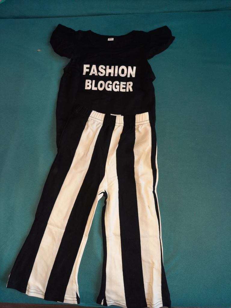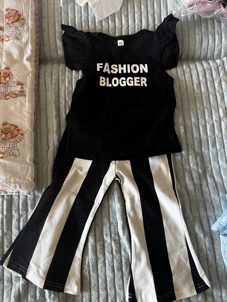 Baby Girls Summer Clothes Set Sleeveless Letter Print O-neck Ruffle Tops+Stripe Bell Bottom Pants Kids 2Pcs Casual Outfits