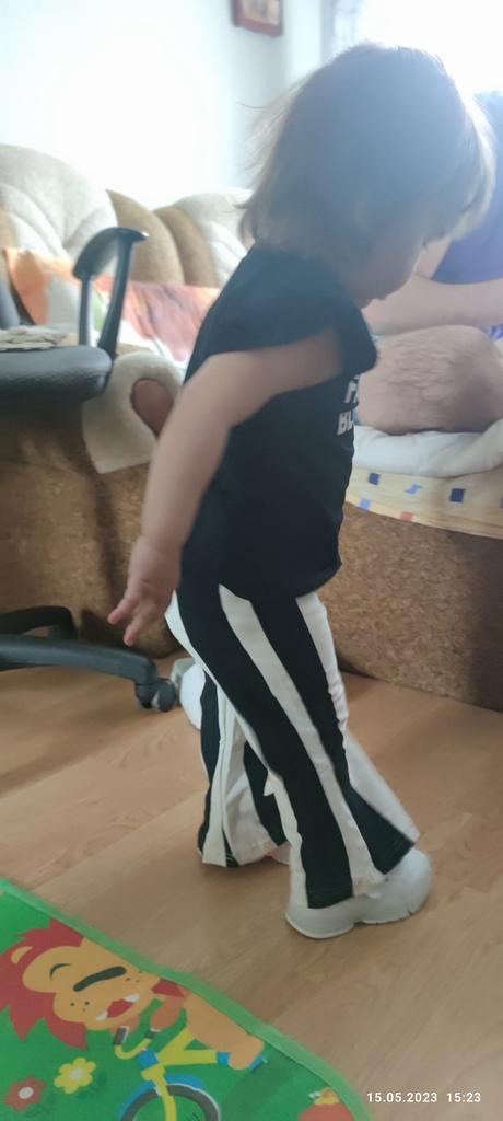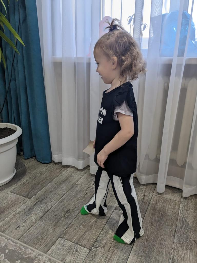 The suit is amazing, true to size ! In the photo itβs 1.5 years old, a little long, in the summer it will be 2, it will be just right π