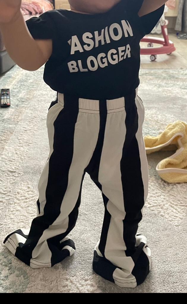 The little vest is small. It will fit the younger one. And the pants are gorgeous..