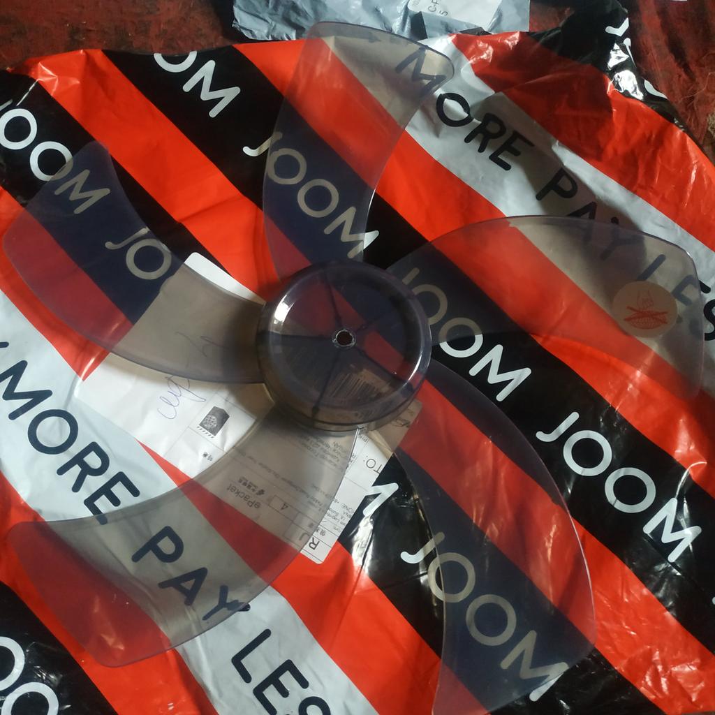 This fan blade is made of soft plastic. Upon receipt, the blades are deformed due to the use of weak and flexible soft material, a couple of blades are flat, the rest are curled upwards. Due to the construction of the blades at the center point, they do not blow air forward but simply around to the outside of the rotary motion, which is not the intention of a fan that should actually create a forward-propelling wind tunnel. 16 inches is 40.64 cm....this part is only 36 cm. Really a bad buy and a poor first experience with JOOM.