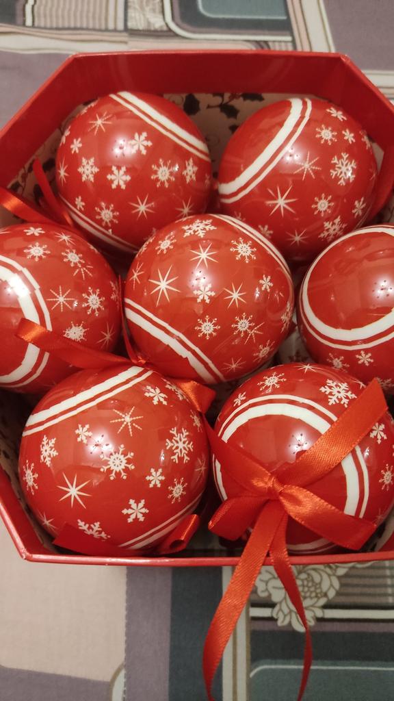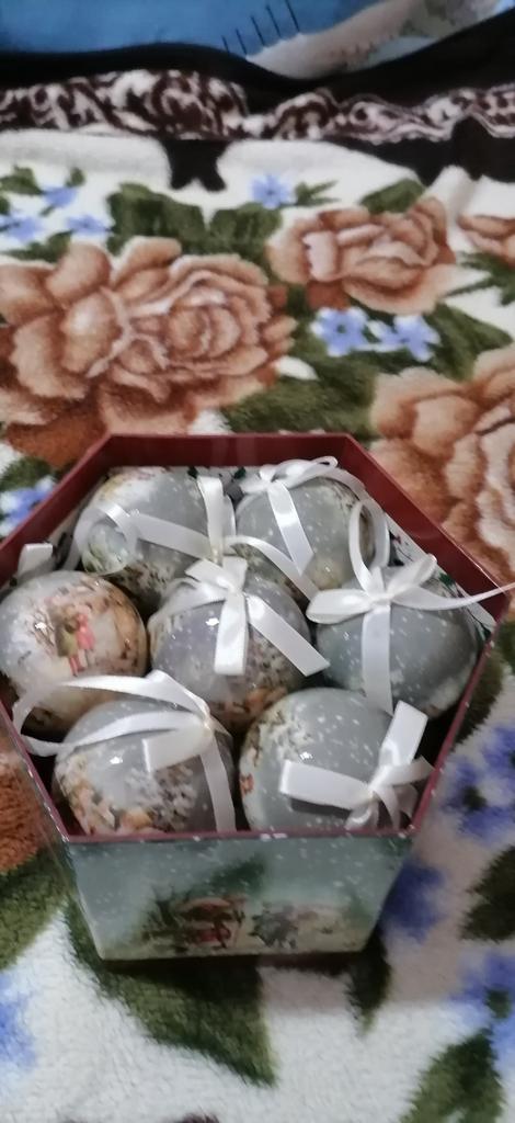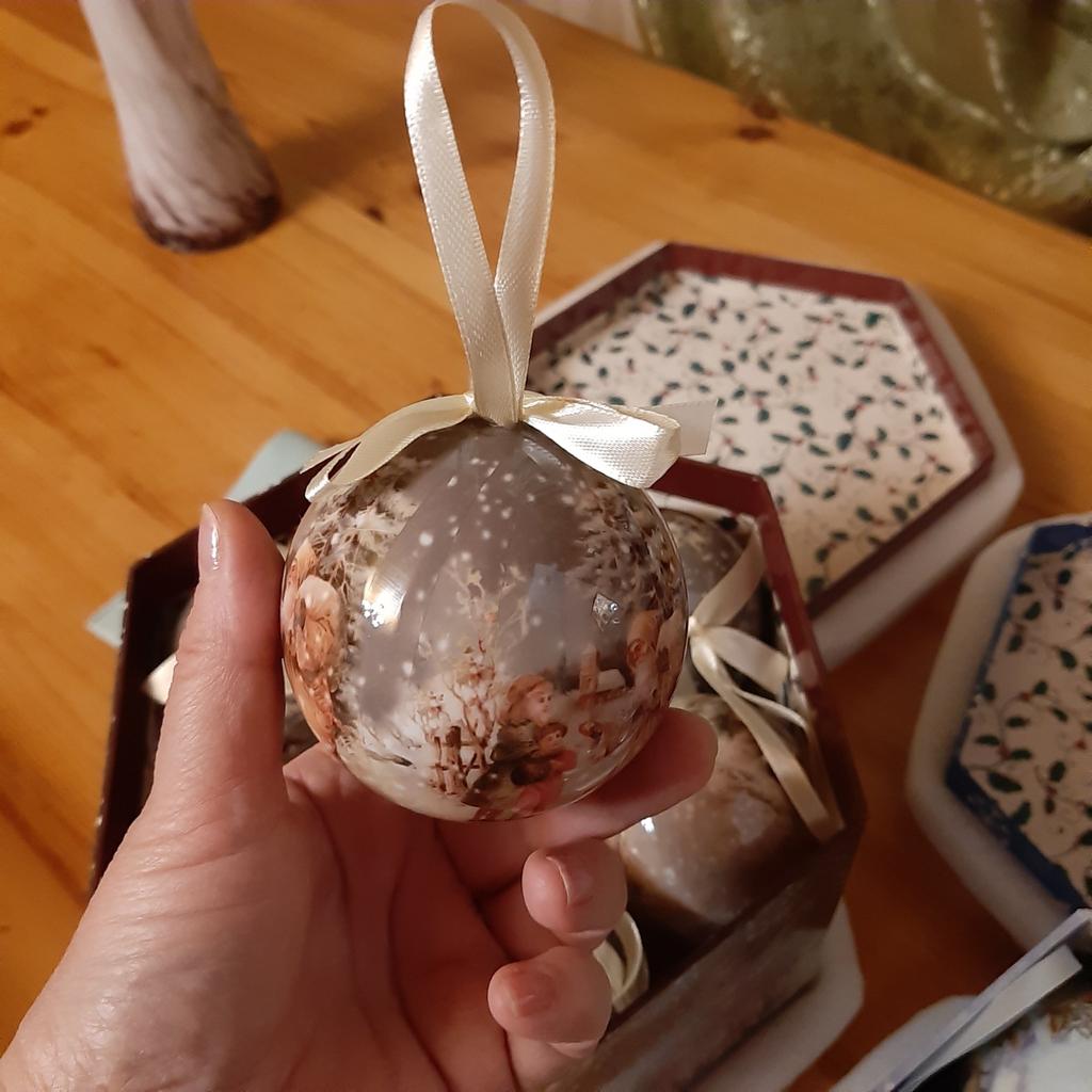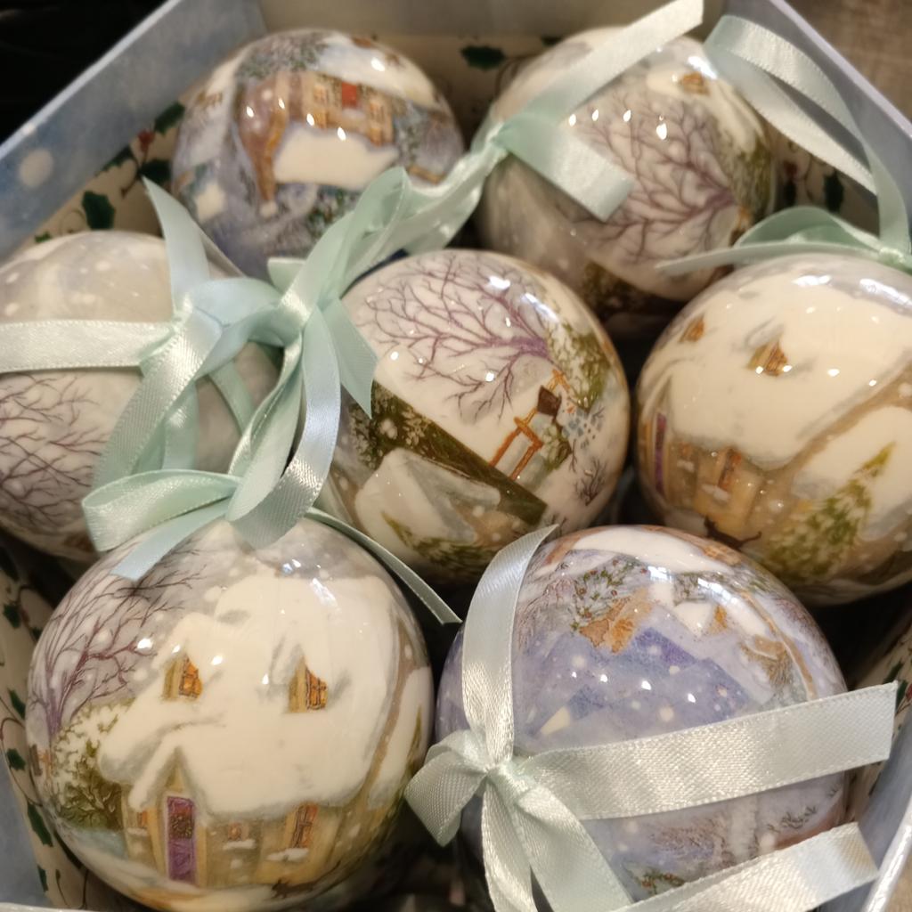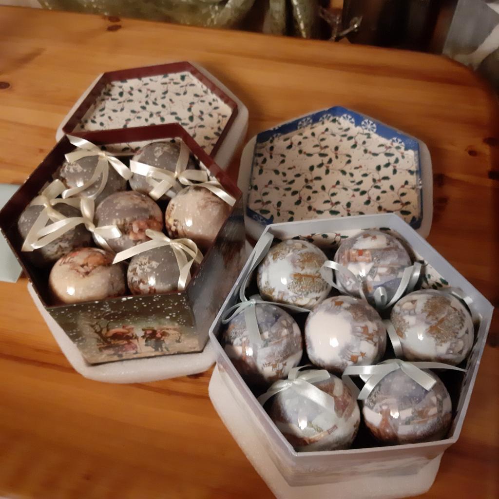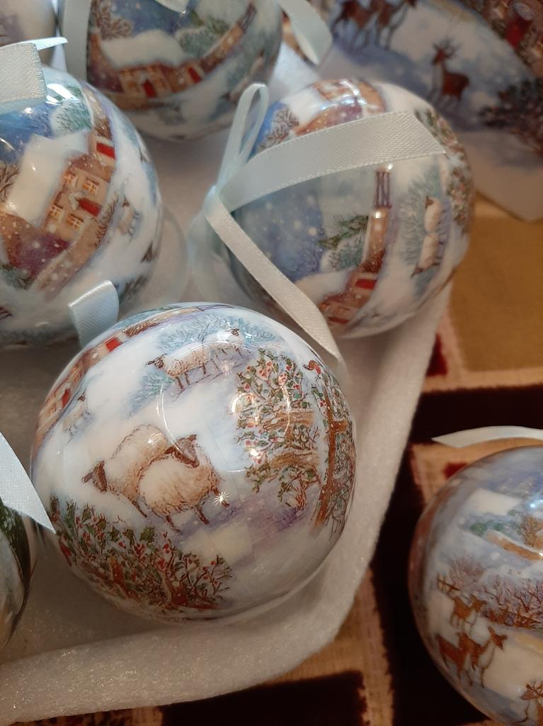 Theae are gorgeous traditional looking baubles. It comes with a really secure package and its own box which is quite good for storage. They're very light and not as breakable which is good if you have a cat.