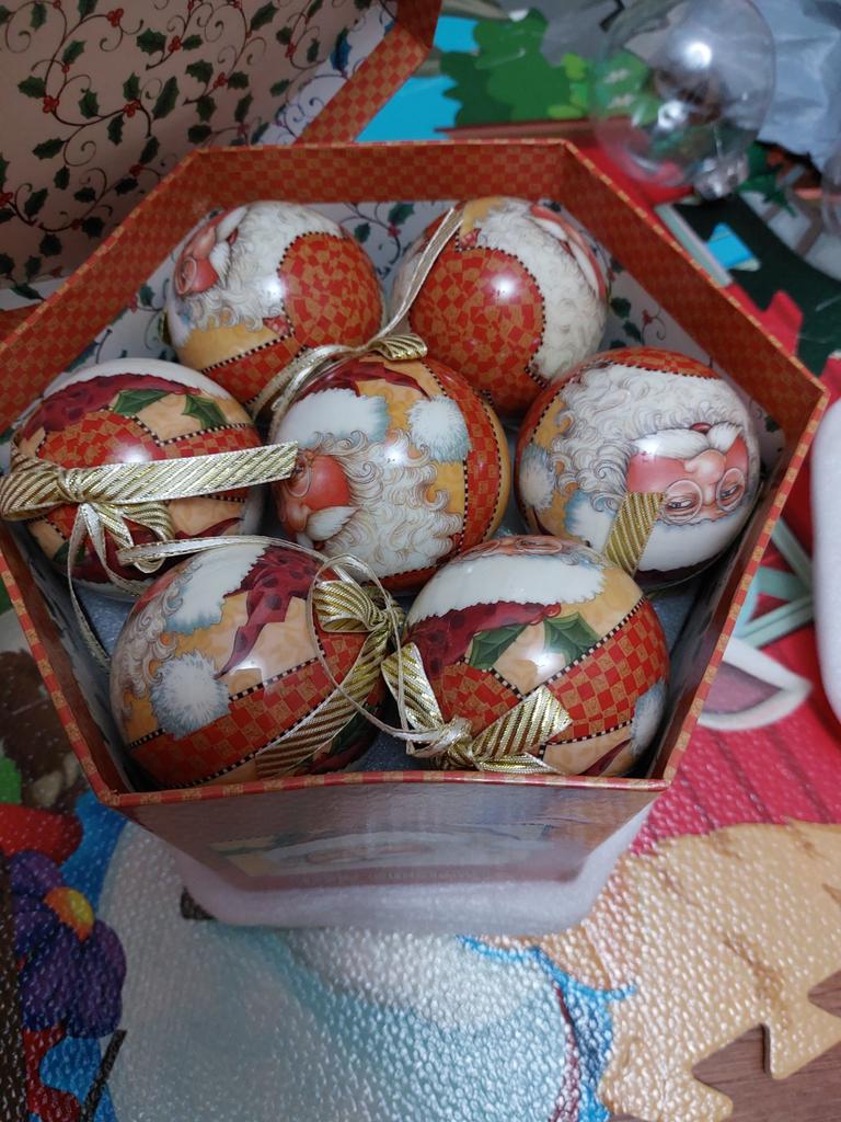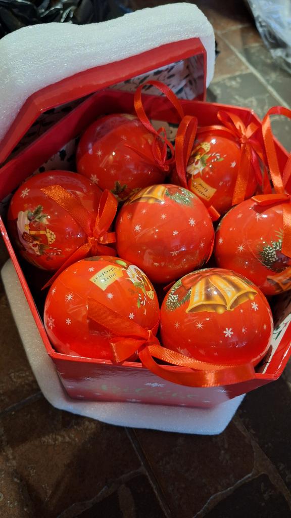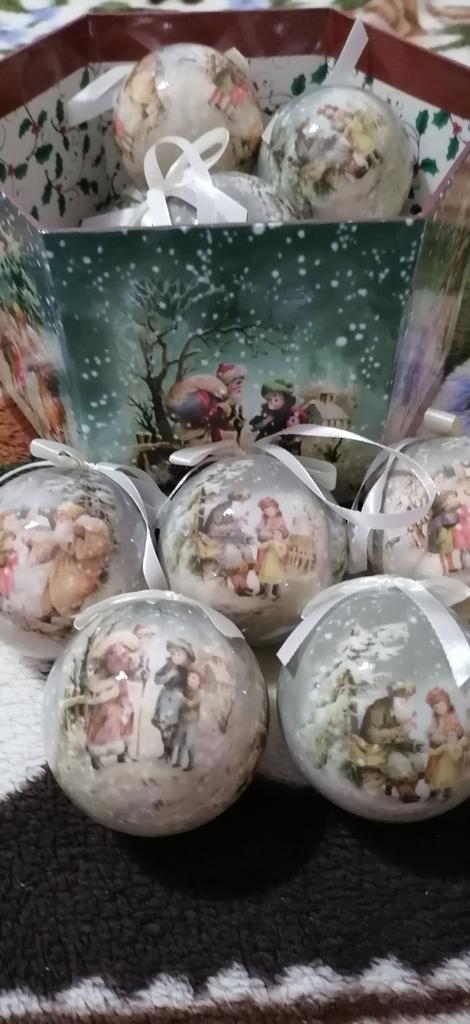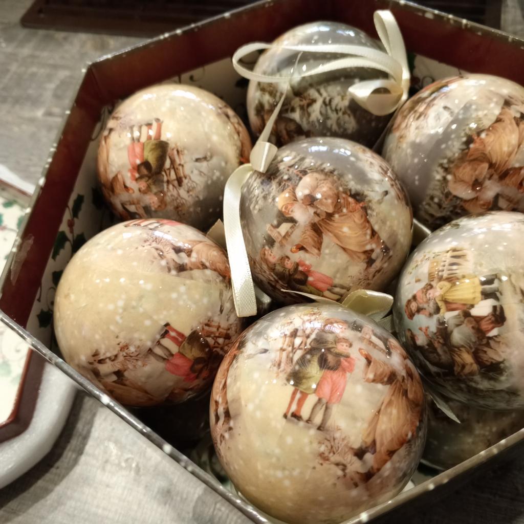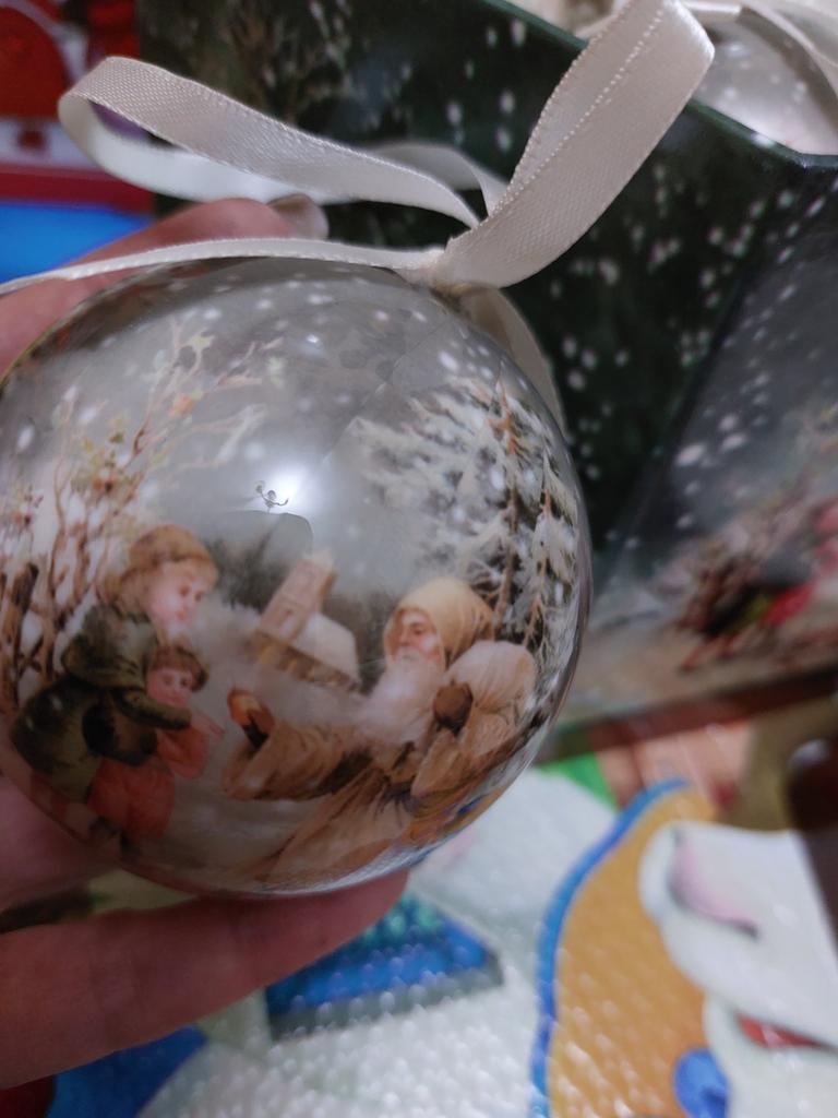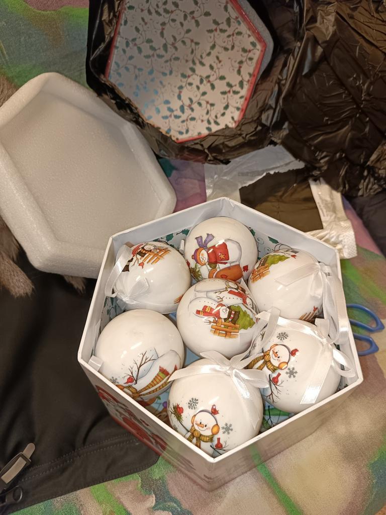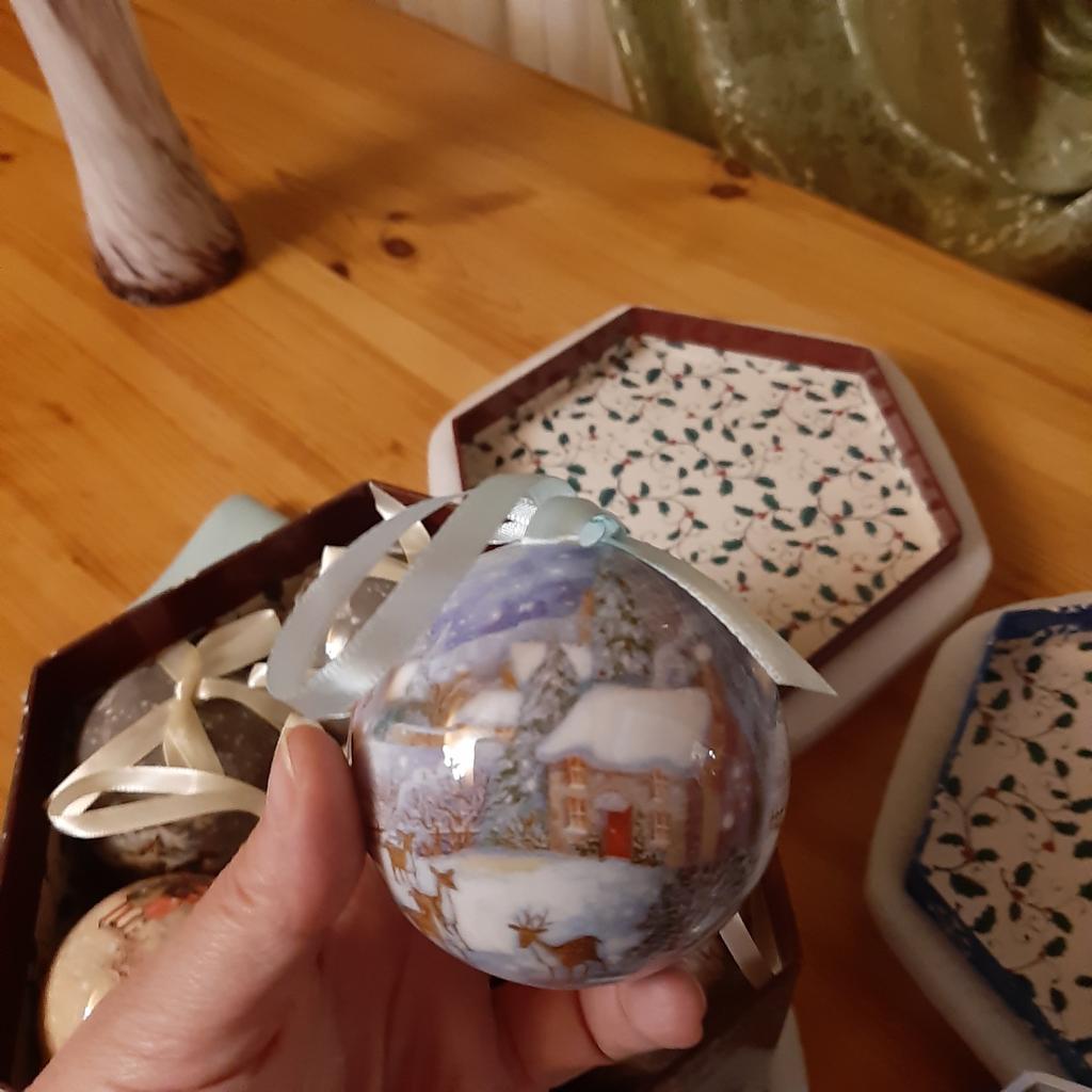 Theae are gorgeous traditional looking baubles. It comes with a really secure package and its own box which is quite good for storage. They're very light and not as breakable which is good if you have a cat.