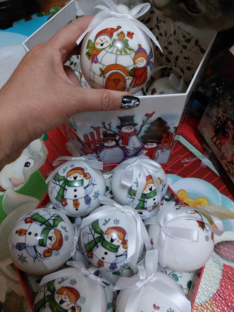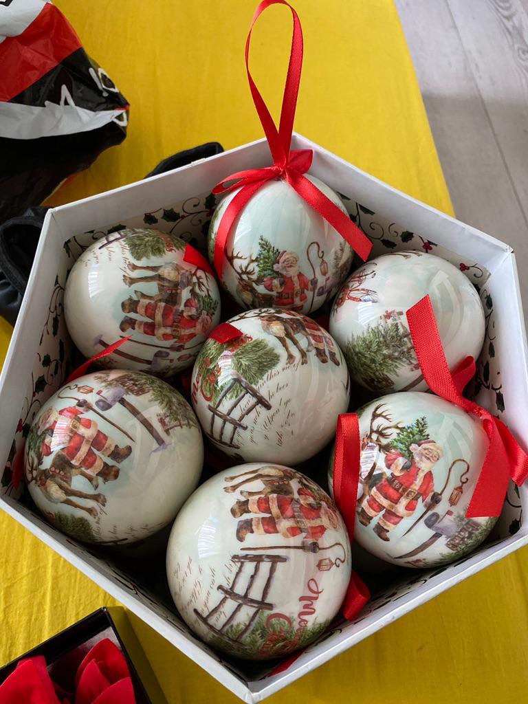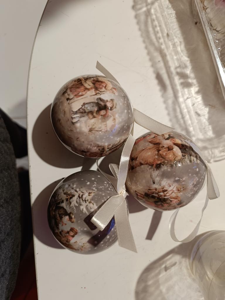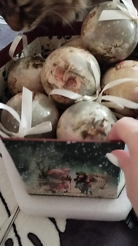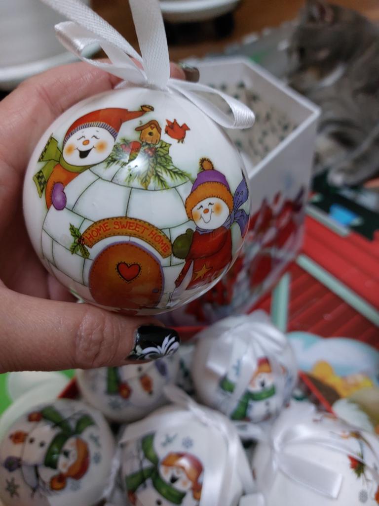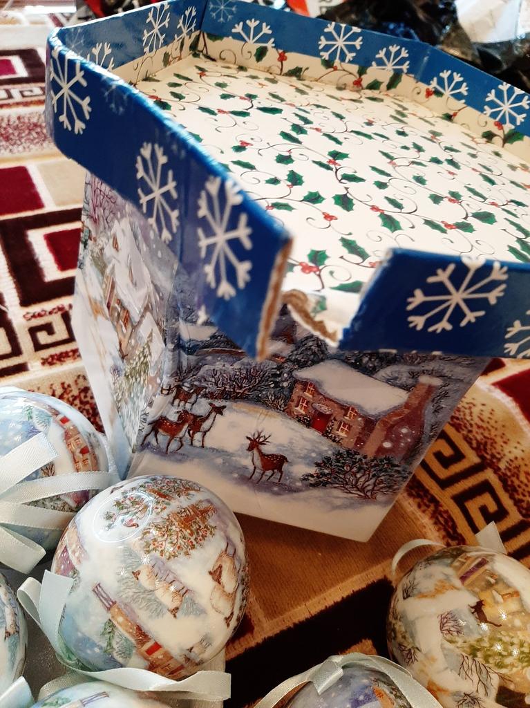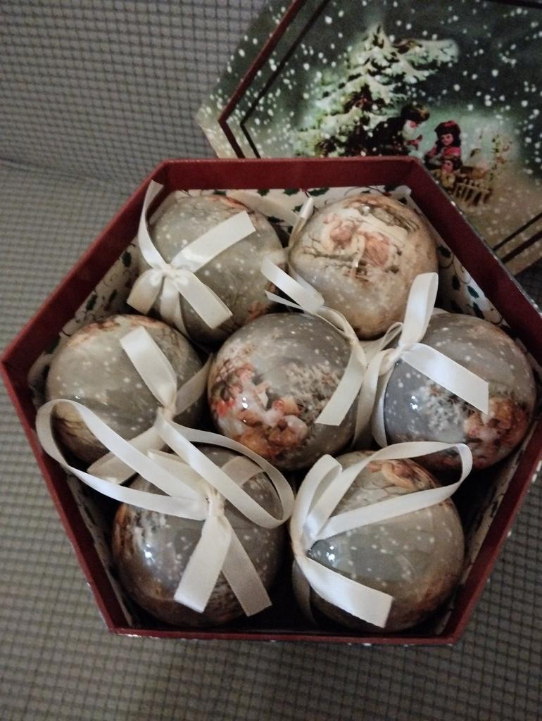 Theae are gorgeous traditional looking baubles. It comes with a really secure package and its own box which is quite good for storage. They're very light and not as breakable which is good if you have a cat.