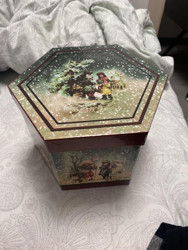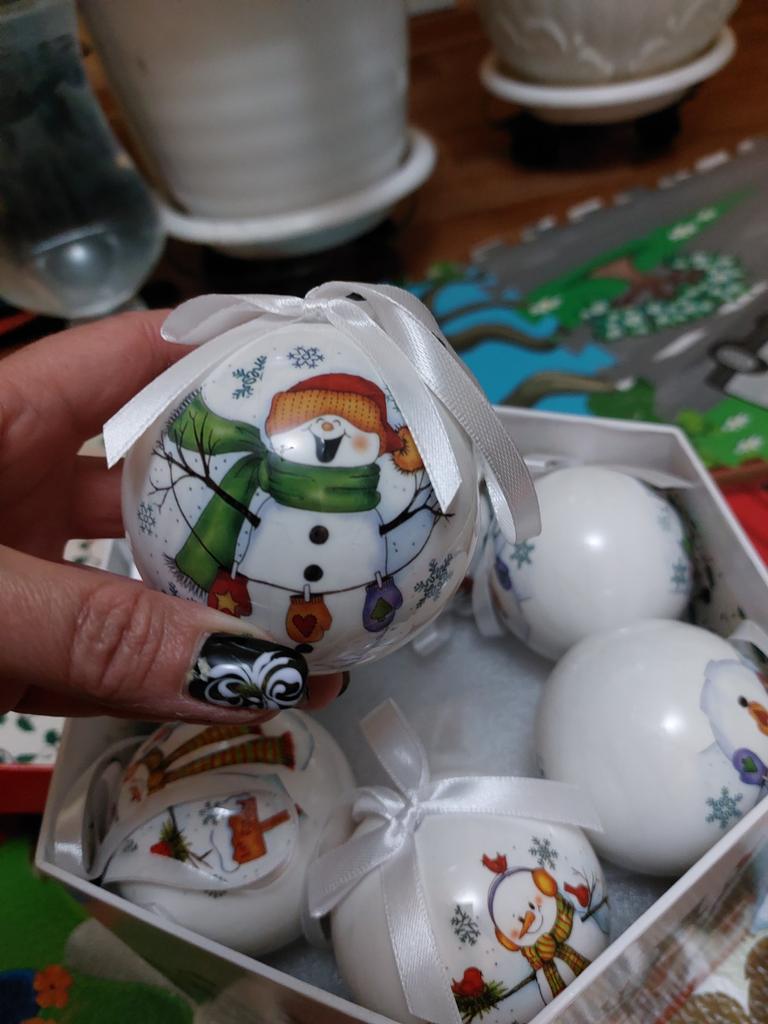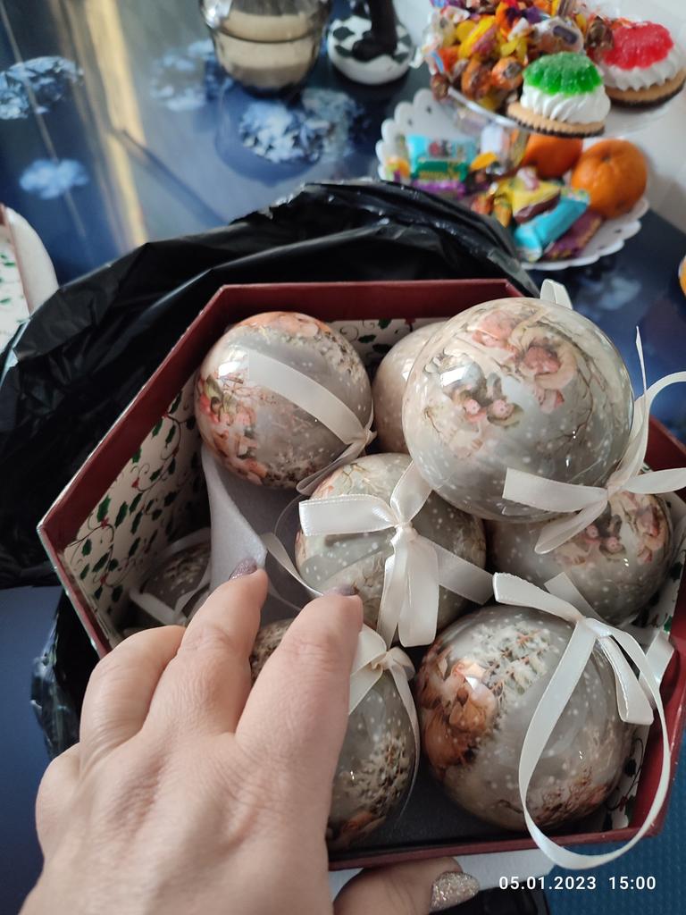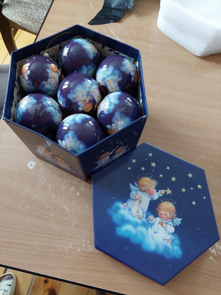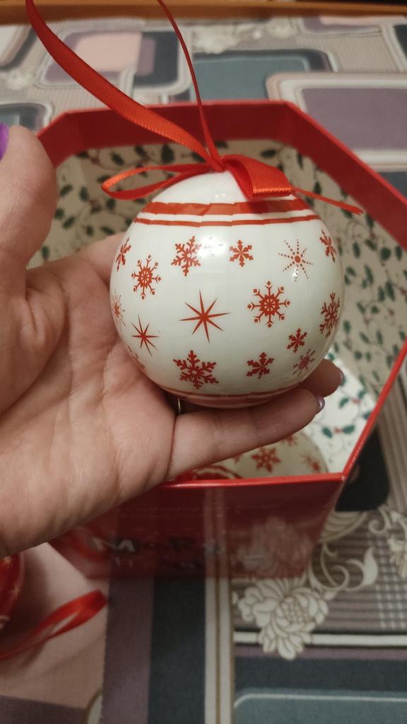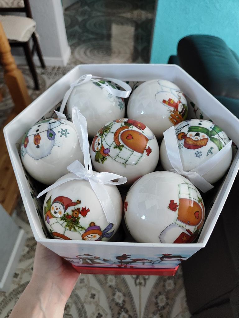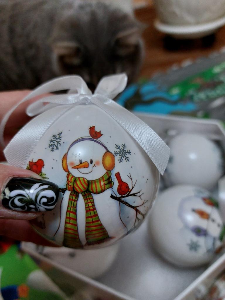 Theae are gorgeous traditional looking baubles. It comes with a really secure package and its own box which is quite good for storage. They're very light and not as breakable which is good if you have a cat.