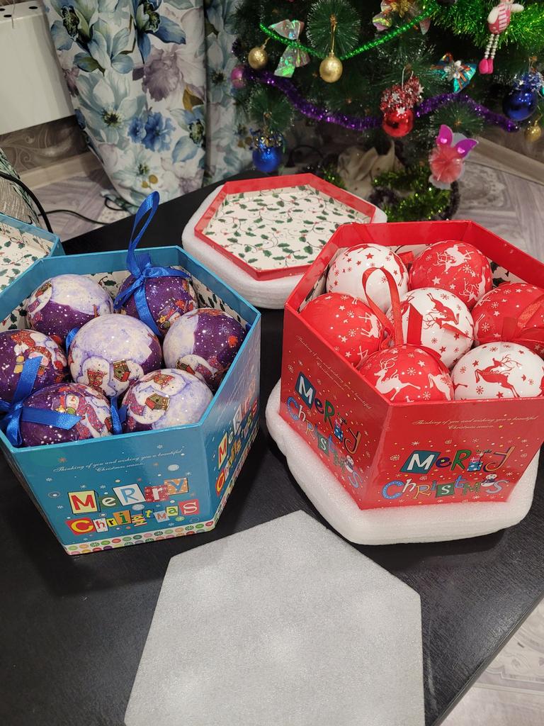 14 Pcs A Box Christmas XmasTree Hanging Ball Ornaments Navidad New Year Ball Bauble for DIY Xmas Decorations Ball with Belts Kids Gift