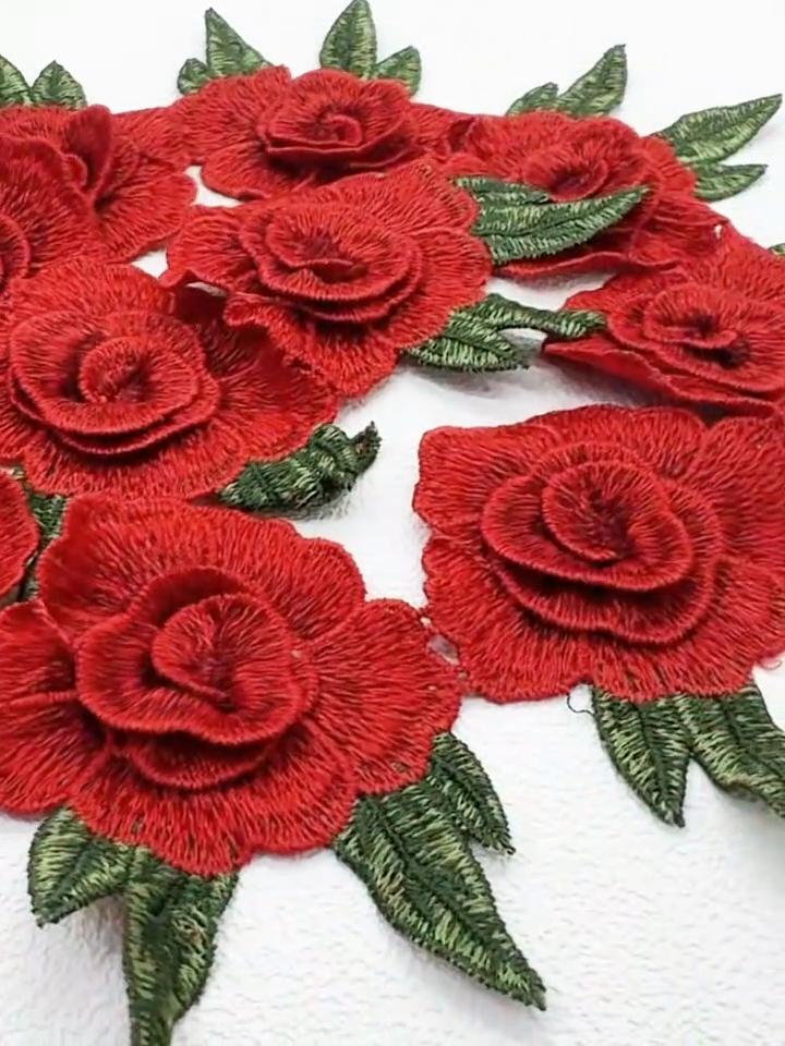 1 Yard Red Flower Embroidered Lace Fabric DIY Dance Costumes Garment Accessories Lace Trim Sewing Craft
