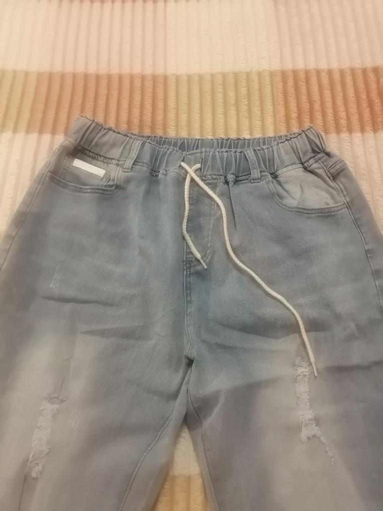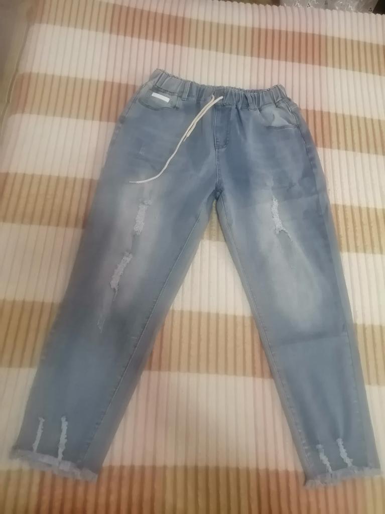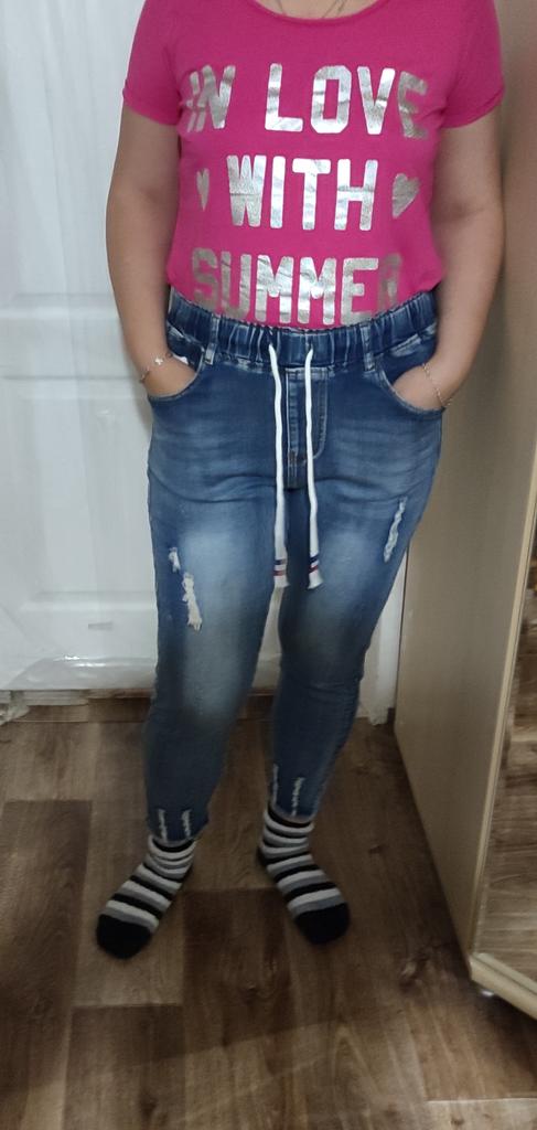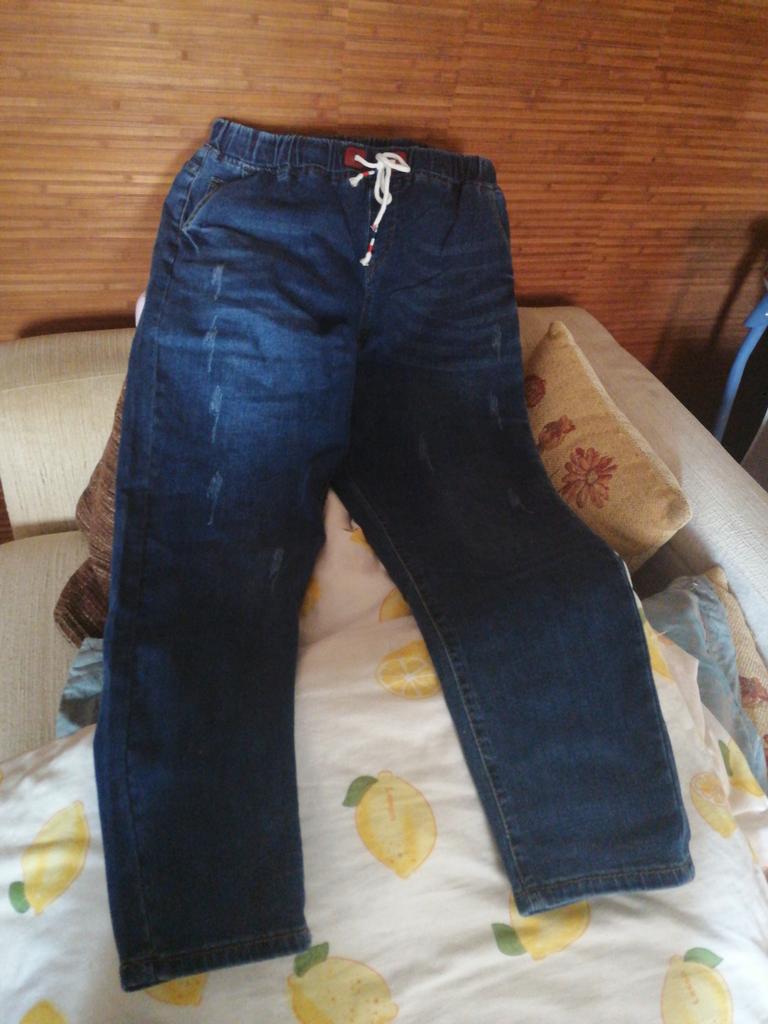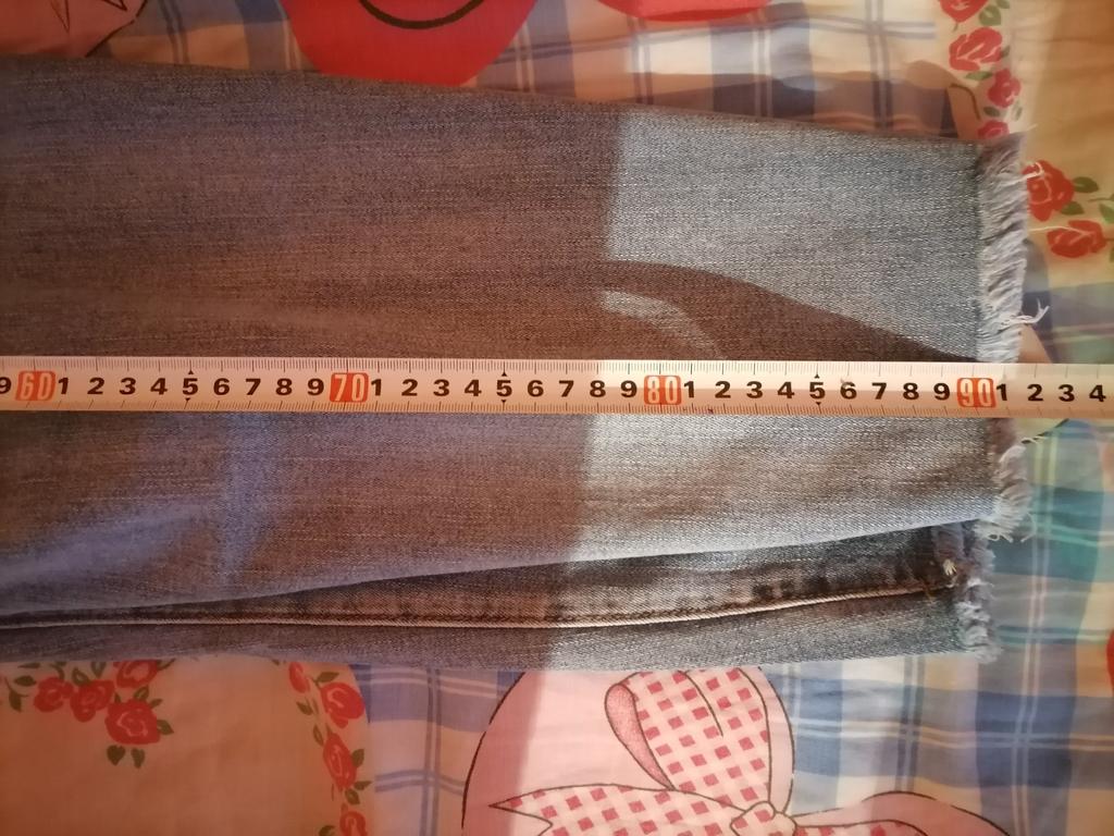 Nice summer pants, made of thin stretch denim. OT unstretched 70 cm, OB 103, leg length 90 cm.