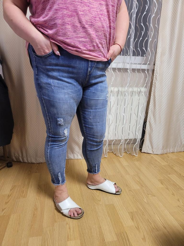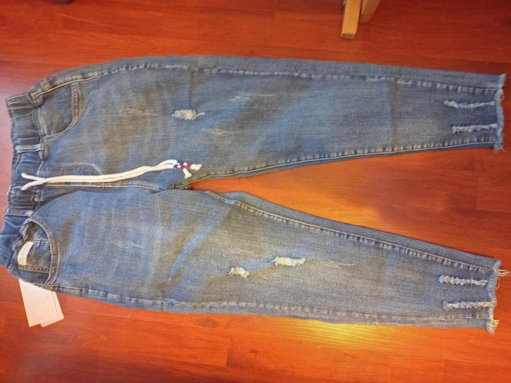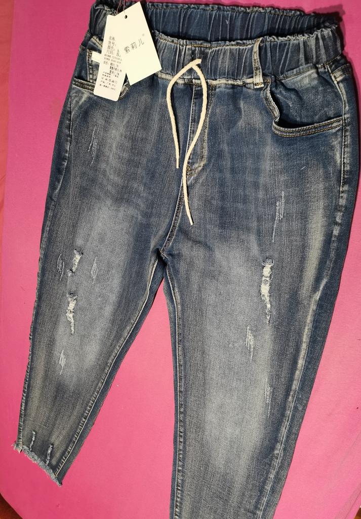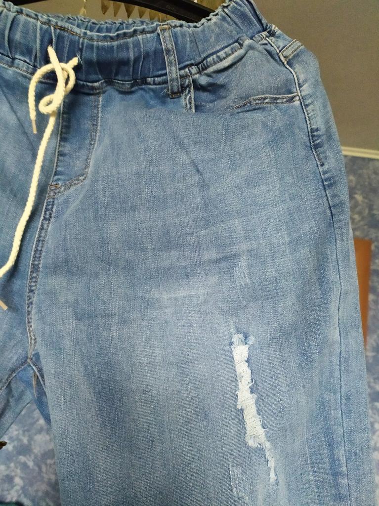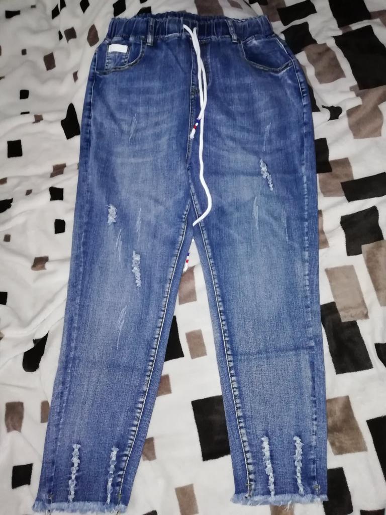 Nice summer pants, made of thin stretch denim. OT unstretched 70 cm, OB 103, leg length 90 cm.