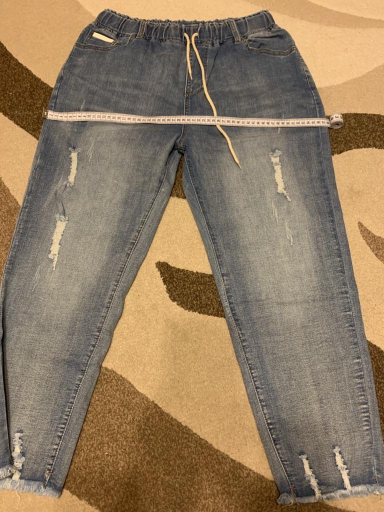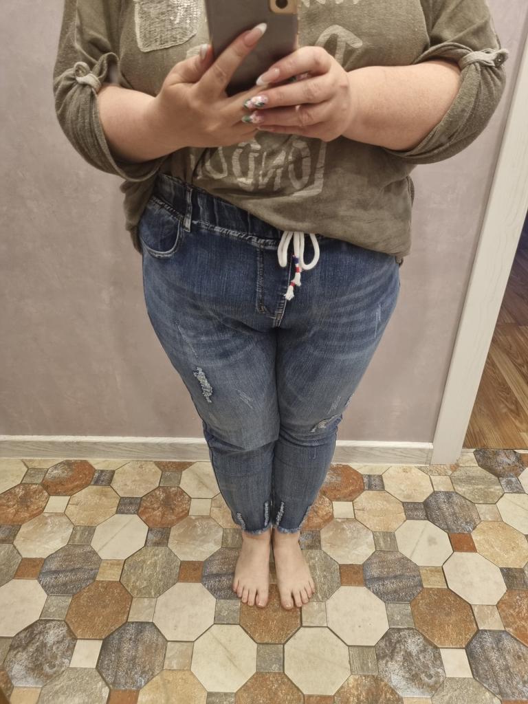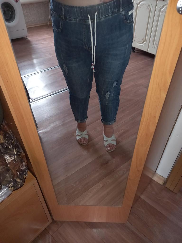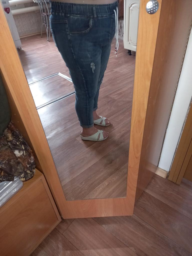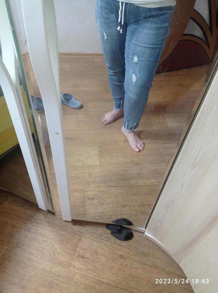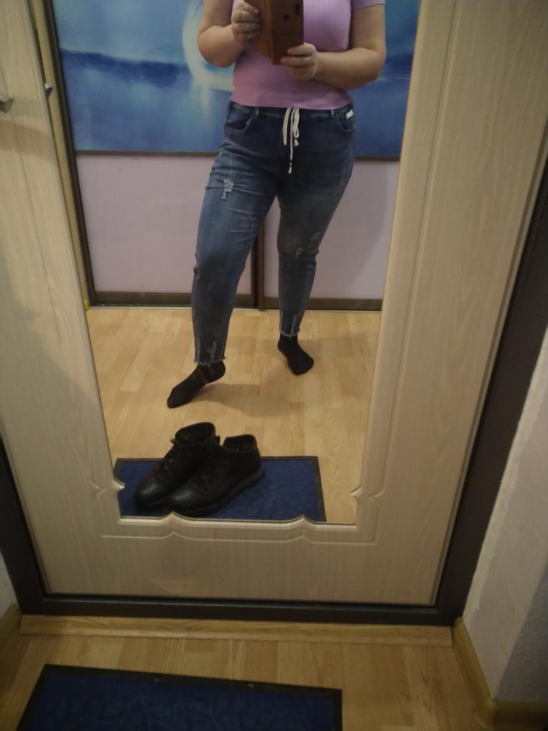 The jeans are simply a dream. For my Russian size 54 - just right, for height 158 - ideal. I'm already in love with them. Buy them, don't hesitate. Huge thanks to the seller and Joom.