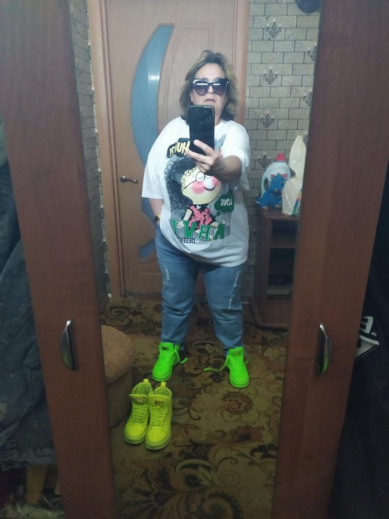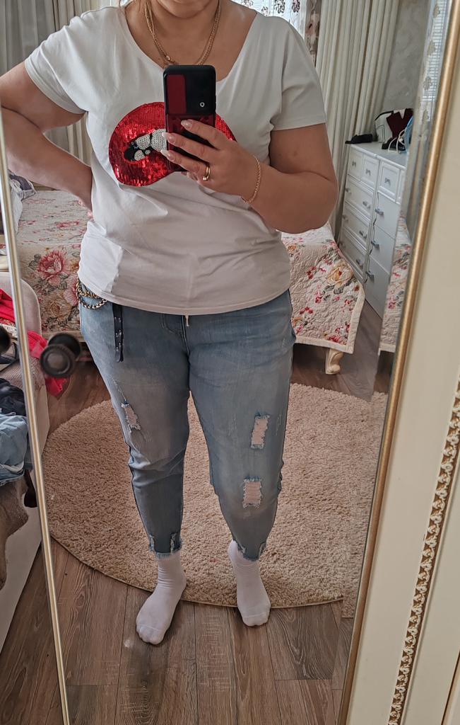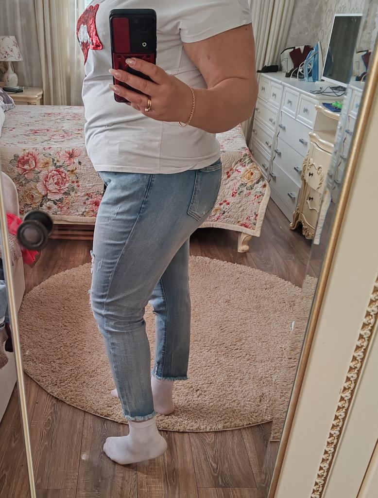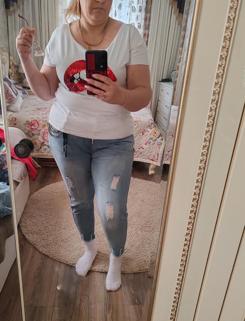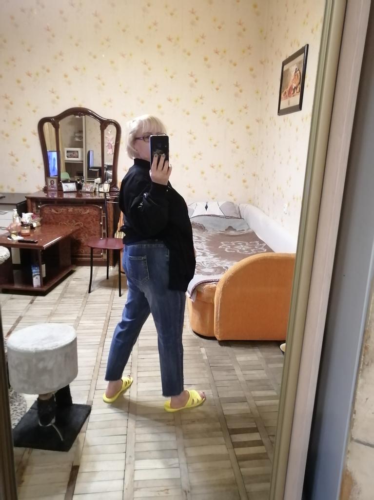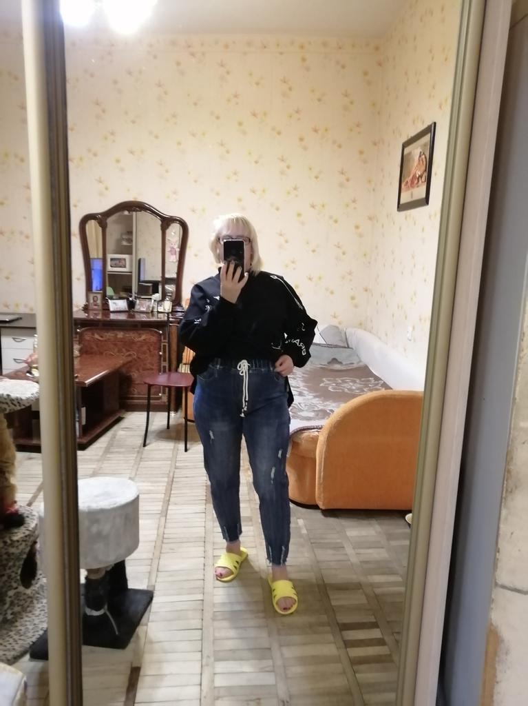 The jeans are simply a dream. For my Russian size 54 - just right, for height 158 - ideal. I'm already in love with them. Buy them, don't hesitate. Huge thanks to the seller and Joom.