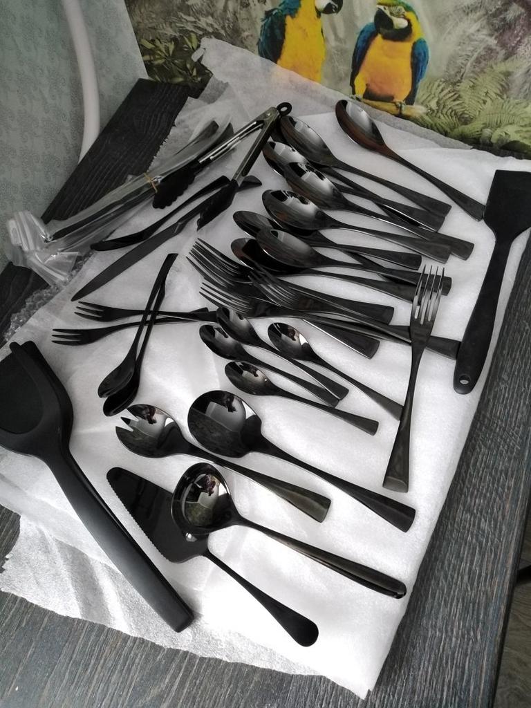 1-Piece Mirror Black Cutlery Set 18/10 Stainless Steel Western Food Tableware Sets Butter Fork Spoon Dinnerware