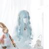 Lolita Wig Female Long Curly Hair Halloween Wig Wave Blue Wig With Bangs Cosplay Synthetic Hair Heat-Resistant Fiber LUPU