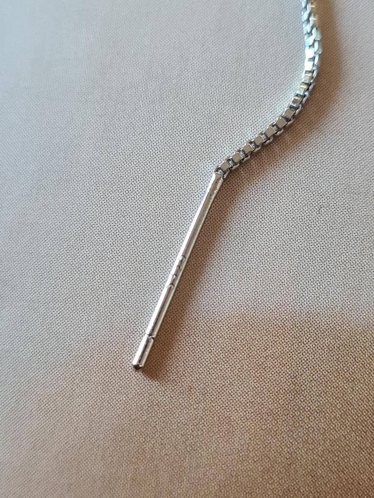 Interesting earrings from Lindon.Had to look at the photo to make sure I'm wearing them the right way.Each earring contains 11cm chain and cuff earring.Made in silver finish,very light and pretty Delivery took 2.5 weeks.Happy Shopping!