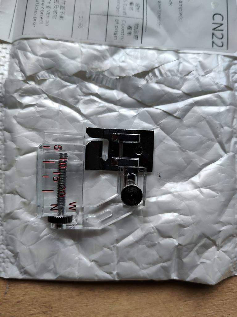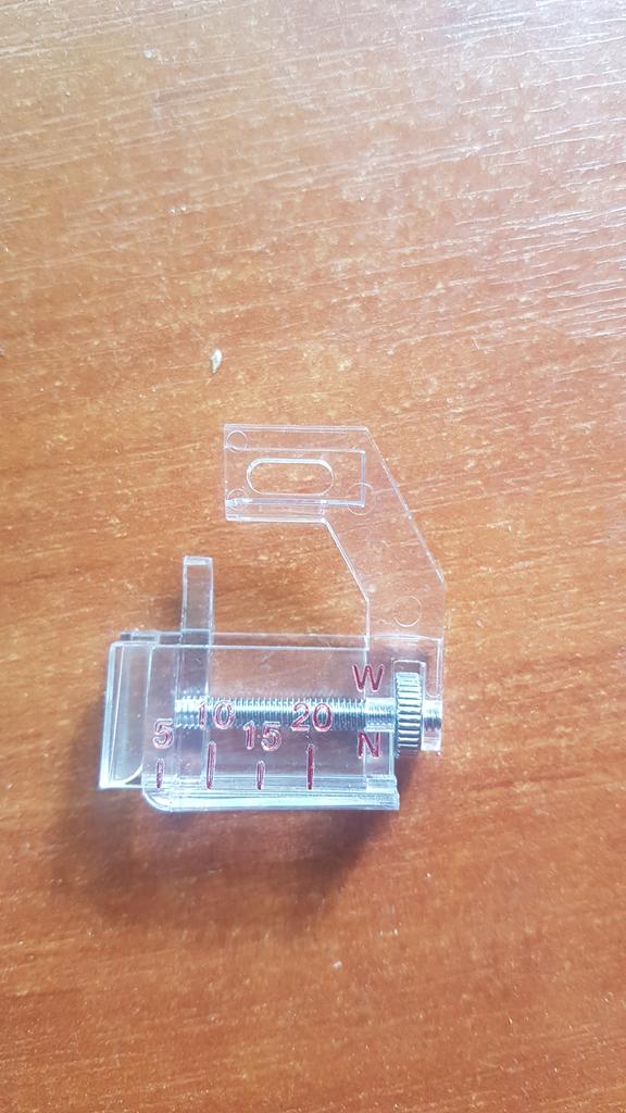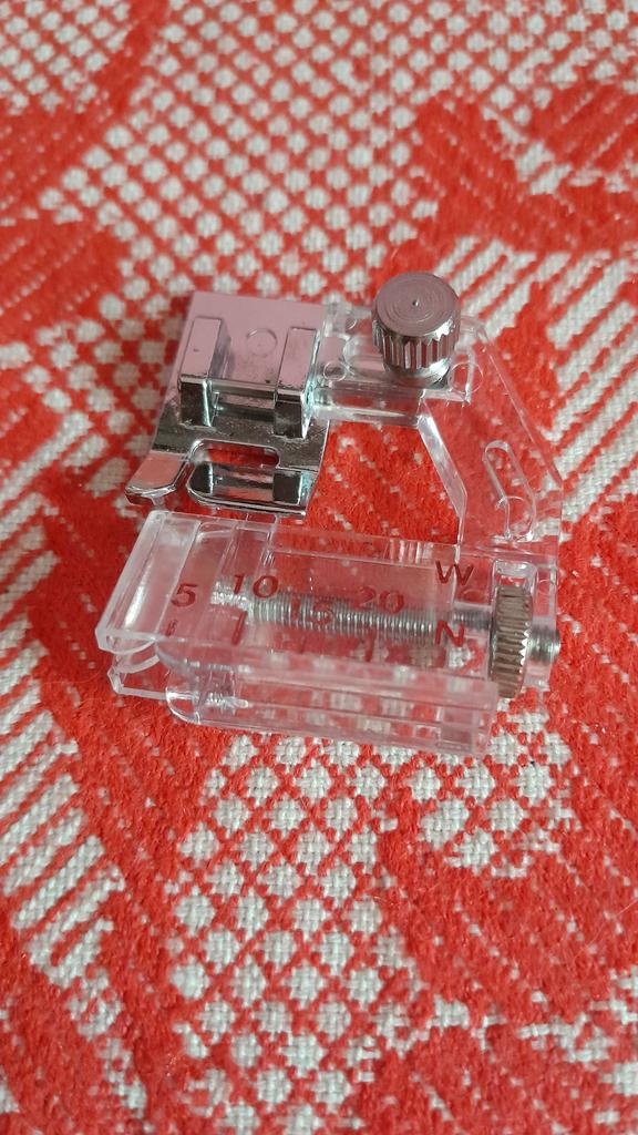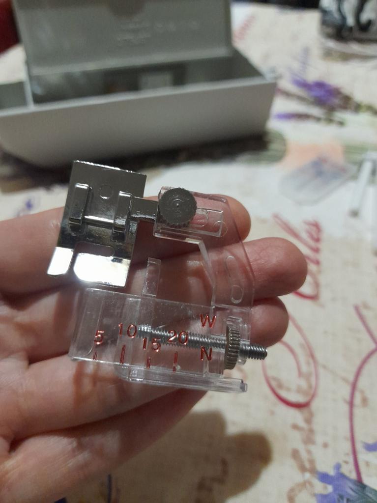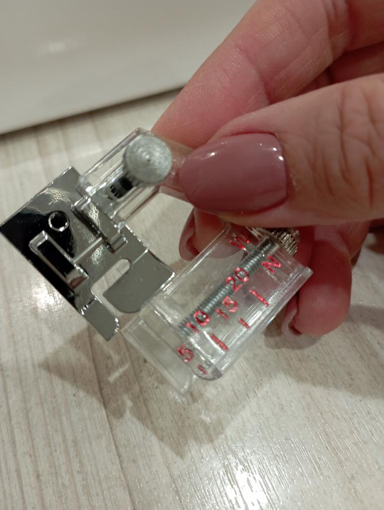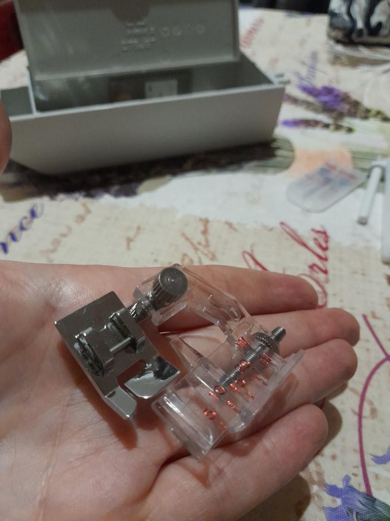 I haven't tried it on the machine yet, but I see that the screw works. The foot is made in such a way that the hem can be placed both on top and under, while adjusting the width. It's convenient.