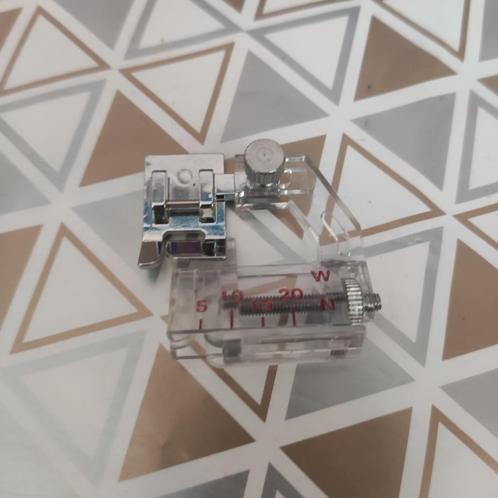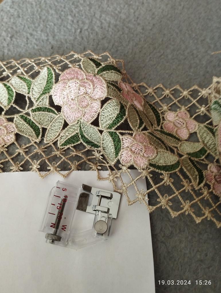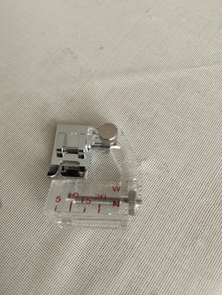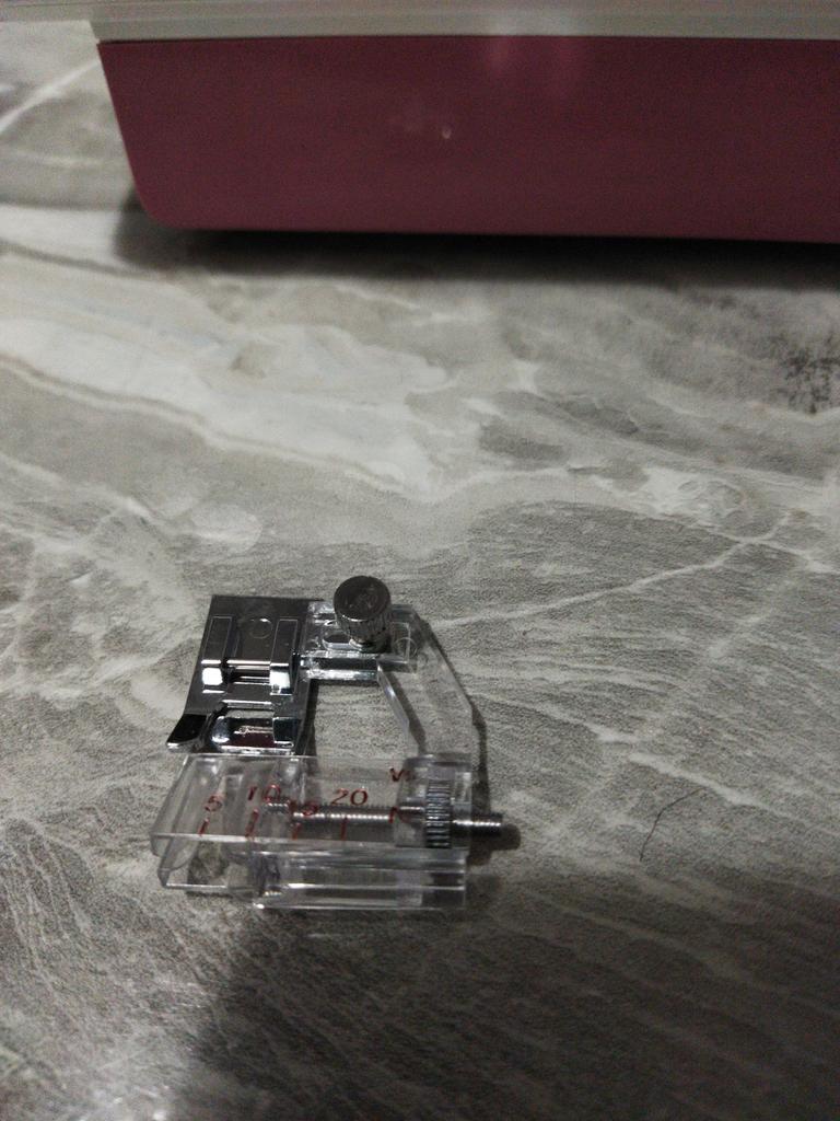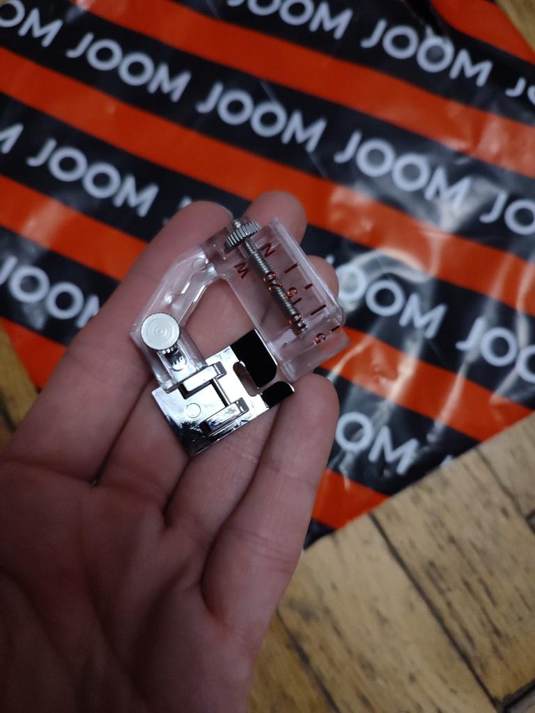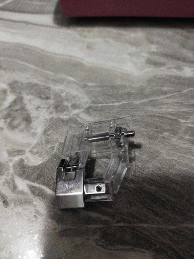 I haven't tried it on the machine yet, but I see that the screw works. The foot is made in such a way that the hem can be placed both on top and under, while adjusting the width. It's convenient.