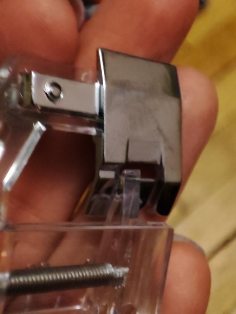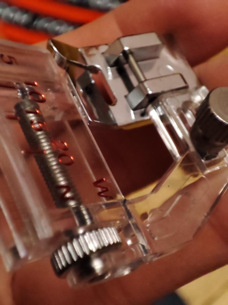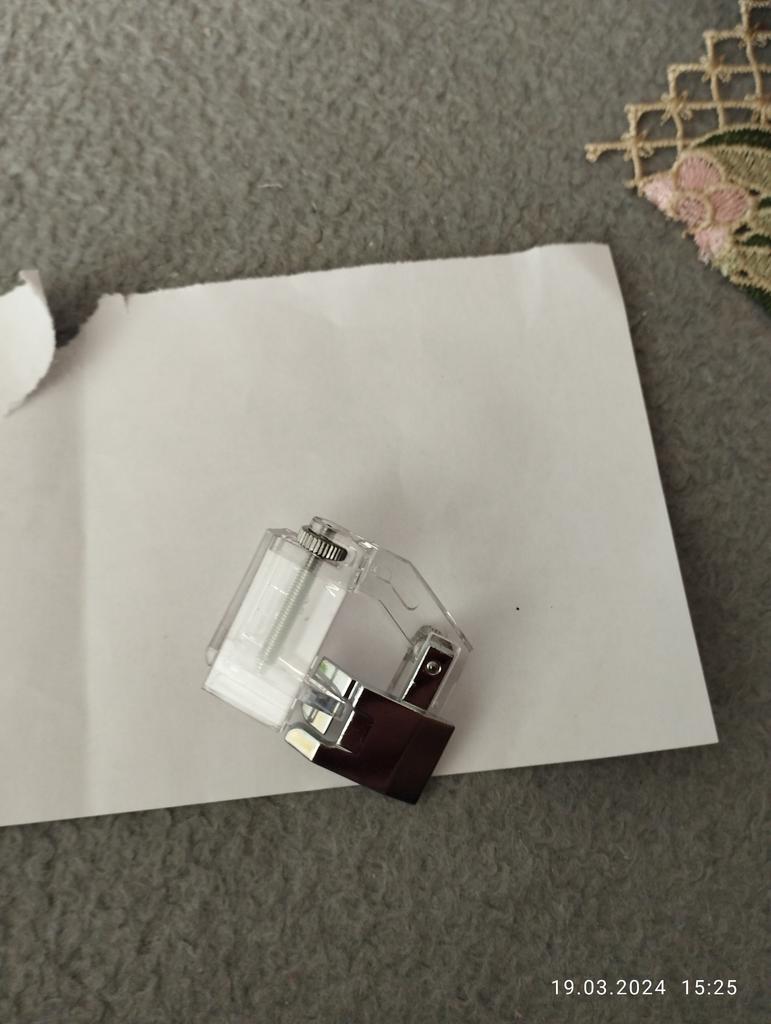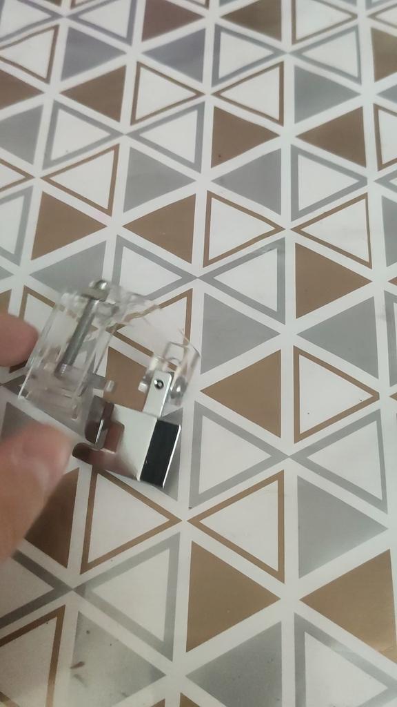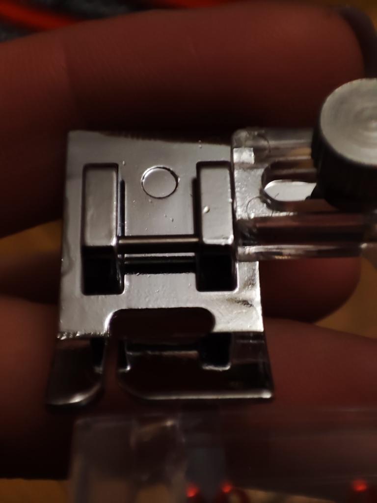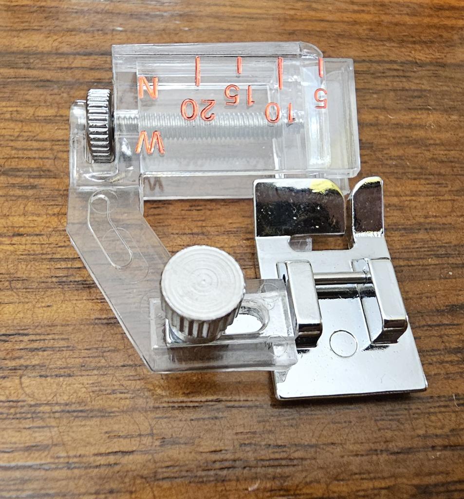 I haven't tried it on the machine yet, but I see that the screw works. The foot is made in such a way that the hem can be placed both on top and under, while adjusting the width. It's convenient.