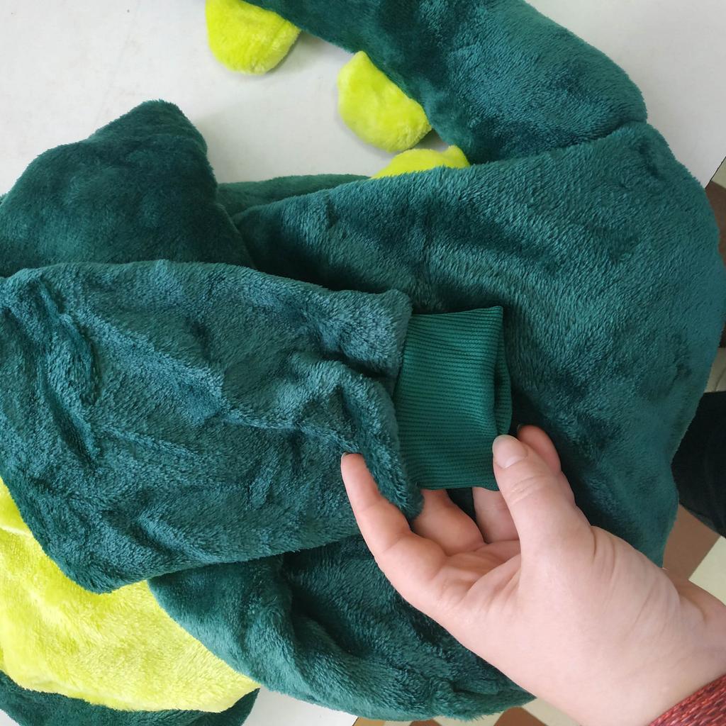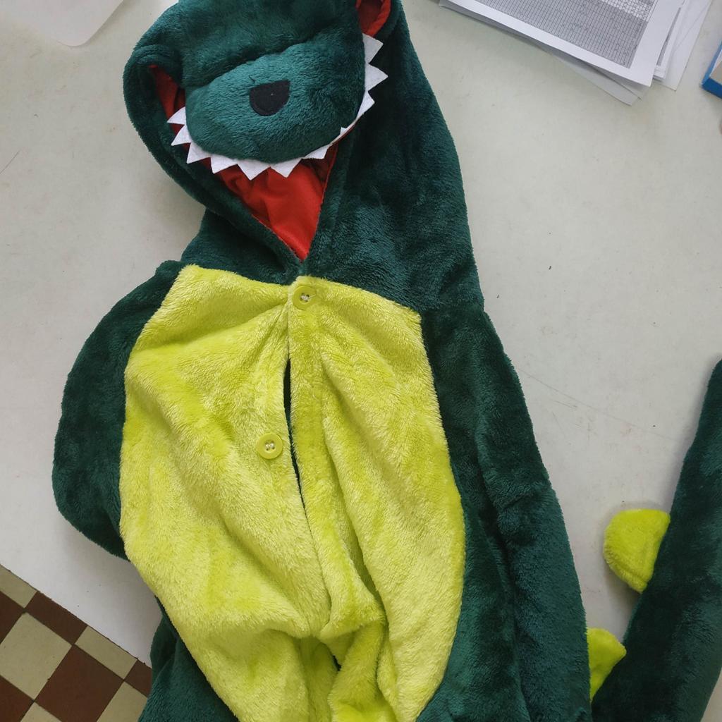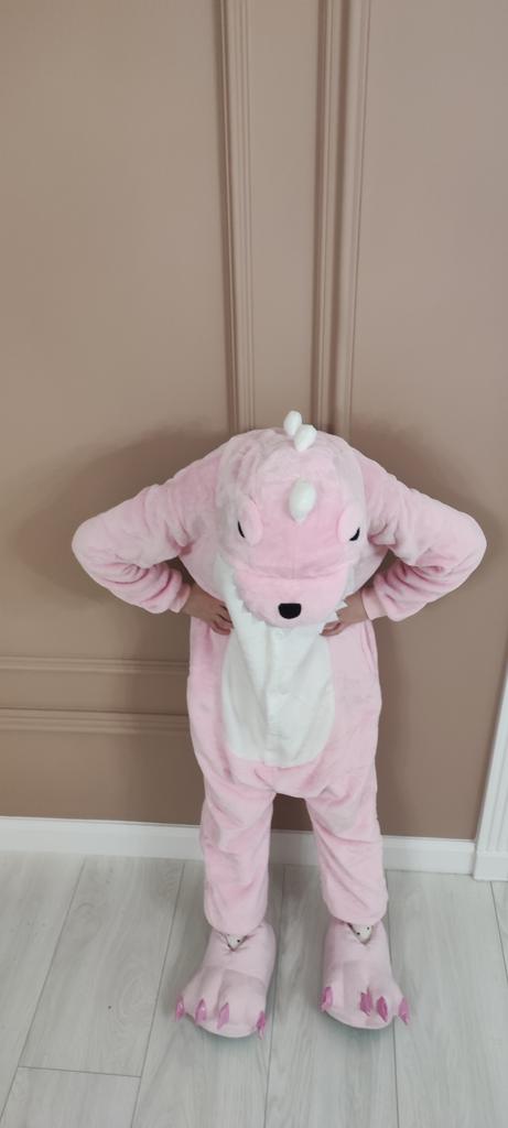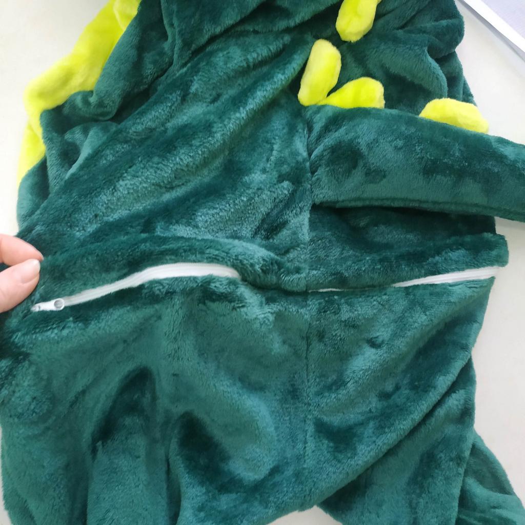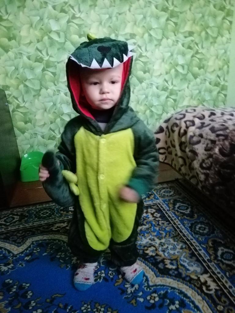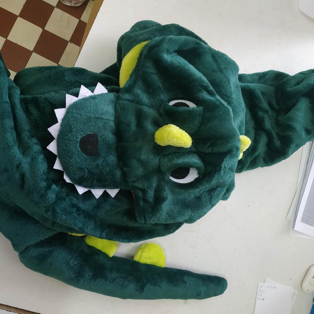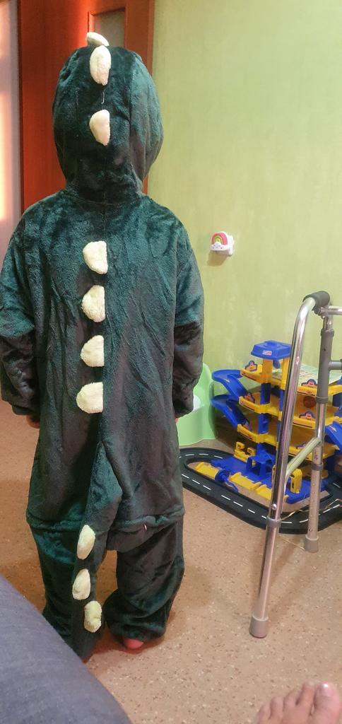 Costume in the form of a dinosaur. Well, the outfit is just cute. The fabric from which the product is sewn is a nice hairy bear. Soft and cuddly to use. The outfit is generally made in the suit version. Fastened with buttons at the front and at the back there is a zipper under the buttocks, thanks to which it will be easier for our kids to use the toilet without removing the entire suit. Of course, the necessary element is a sewn-on tail and hood in the shape of a dinosaur's head. No revelation. Soon, my nephew will have a Santa Claus ball in kindergarten. I will then try to add some photos from the event so you can judge the disguise yourself. So far, the outfit is just great. I recommend and give deserved 5 stars.