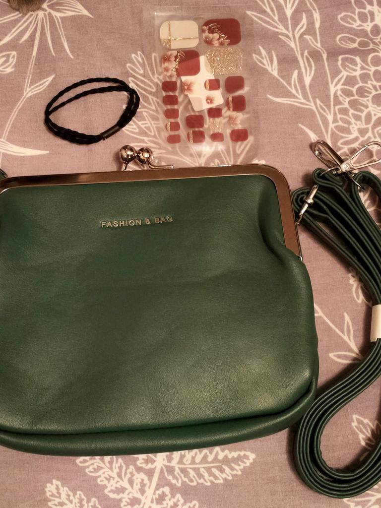 The handbag is very pretty, I already go with it, everything matches, thanks for the gift - hair band