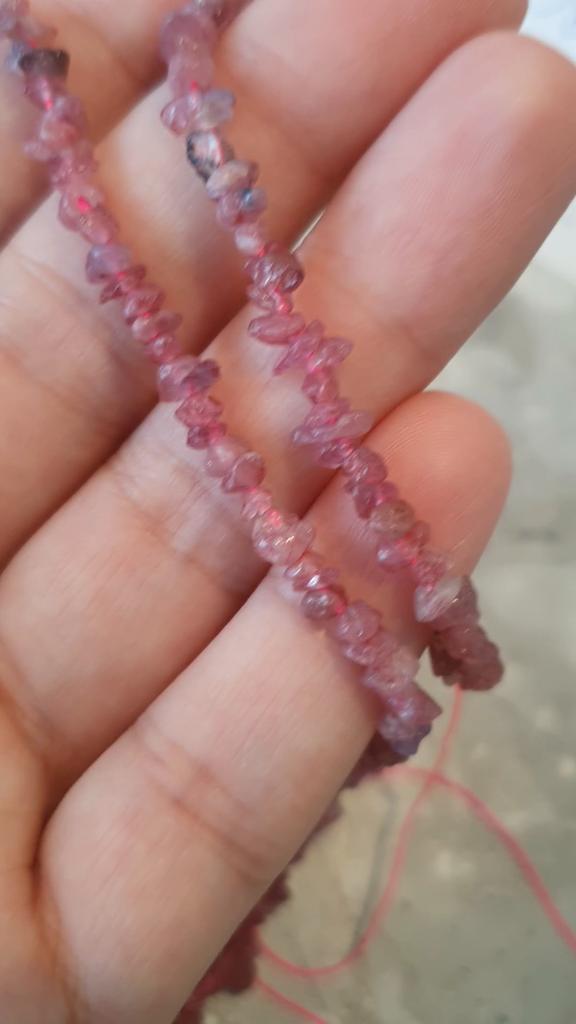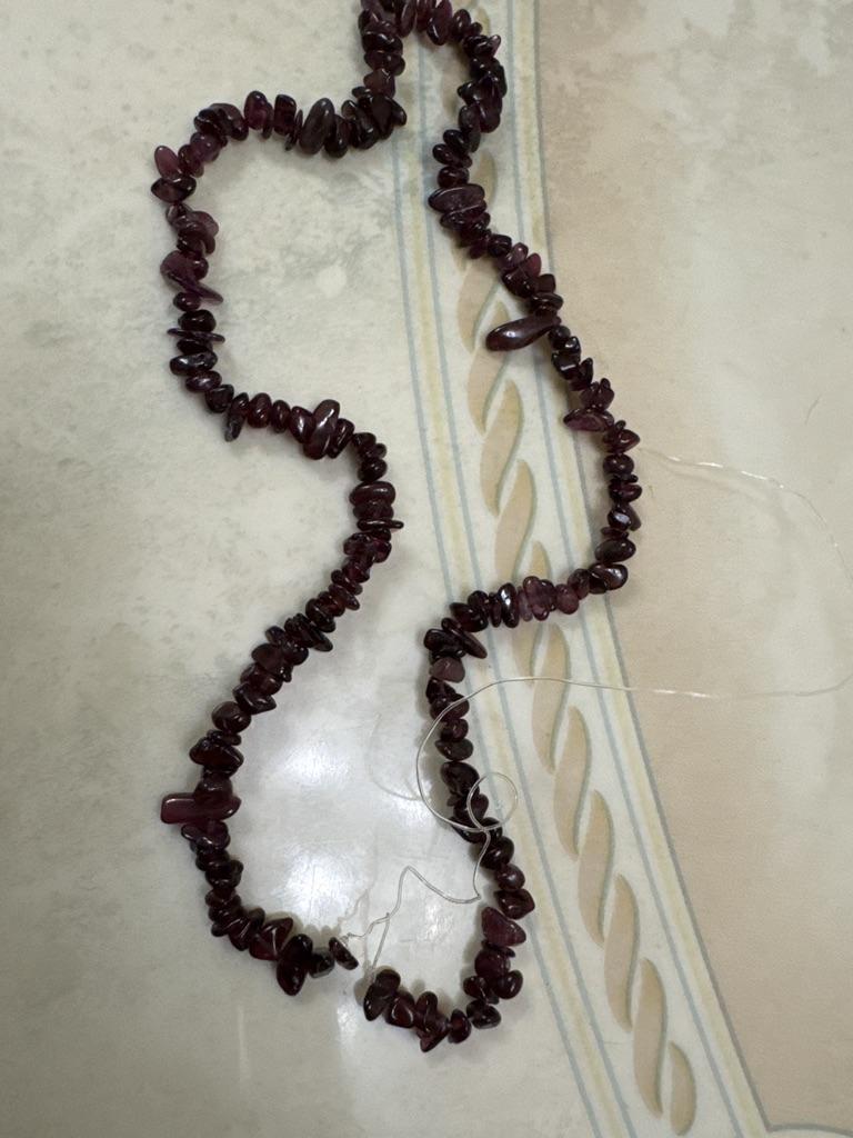 The stones are slightly larger than garnet and look more like the photo, length 38 cm. One large bead in the center also does not spoil the look.