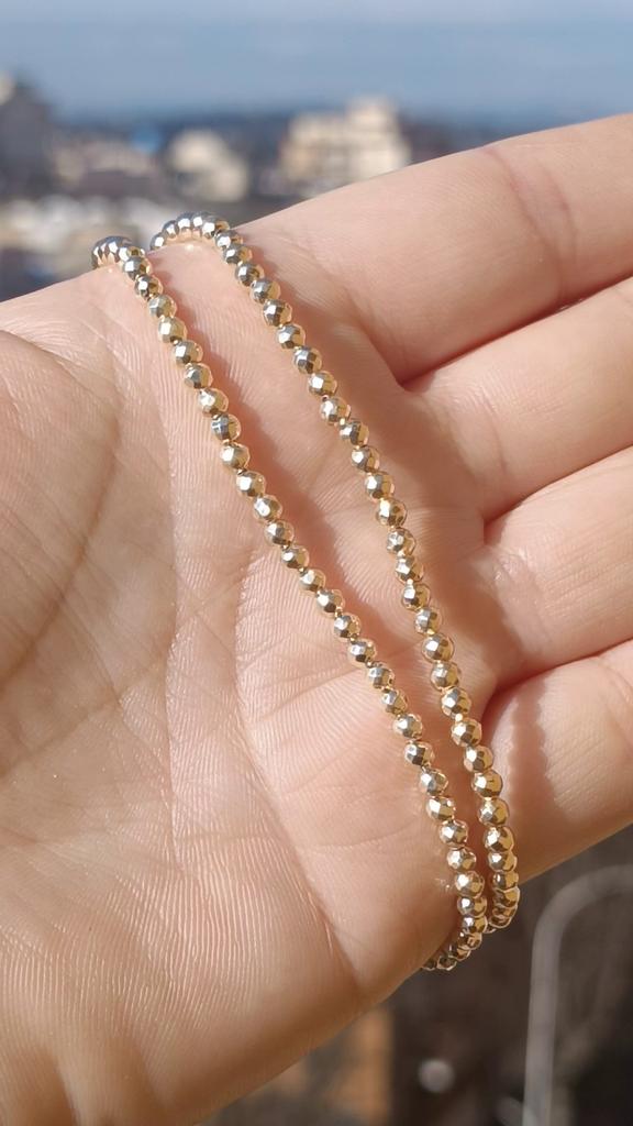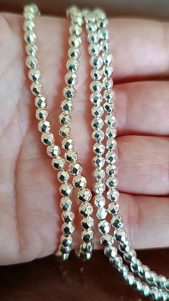 2/3/4/6/8mm Natural Stone Beads Faceted Light Gold Plated Hematite Loose Bead For Jewelry Making DIY Bracelet Accessories