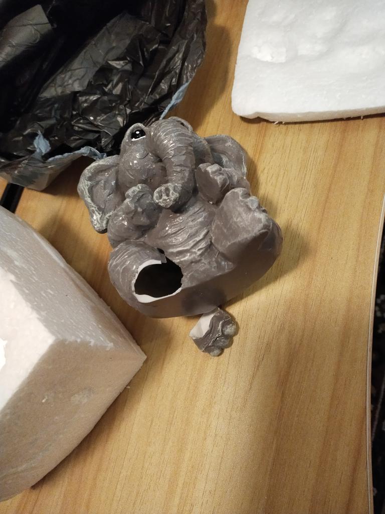 good afternoon received the package. The elephant has a broken leg. I filmed a video, but it won't send. I wanted it as a gift, return the money.