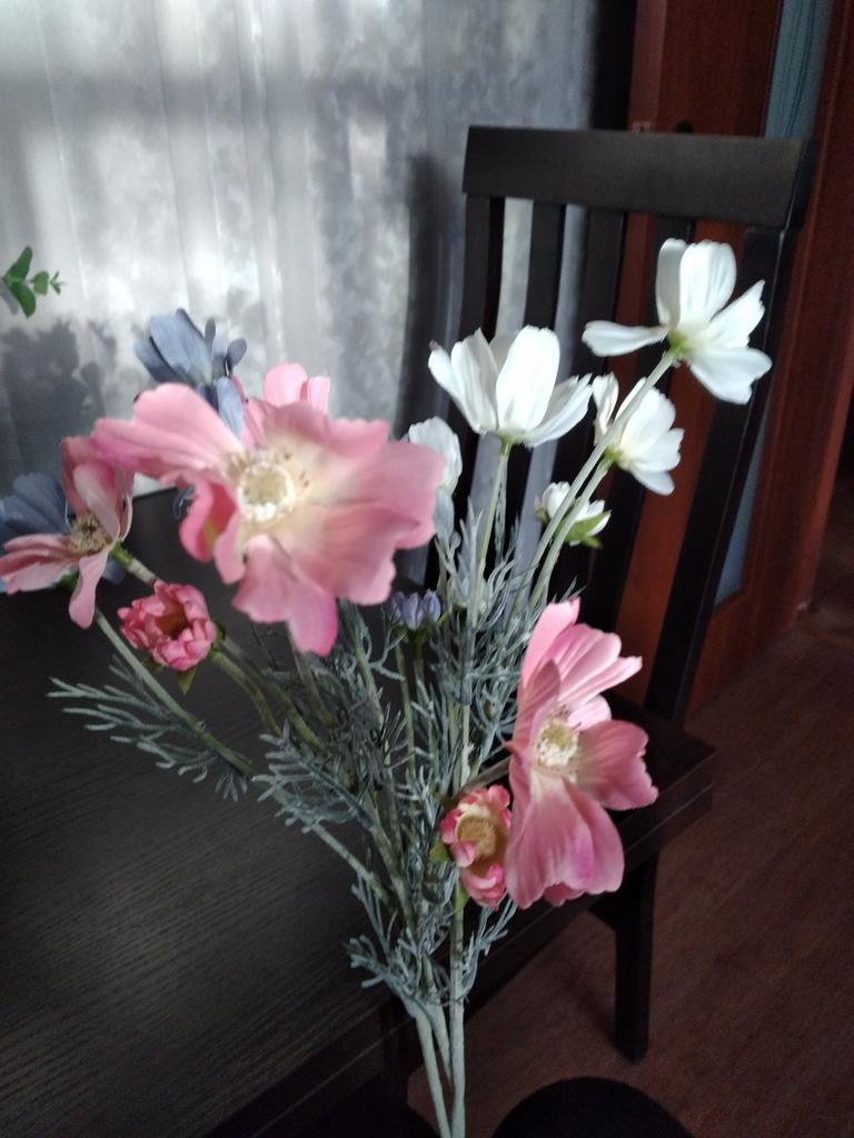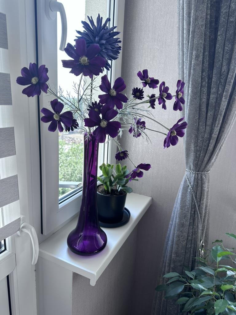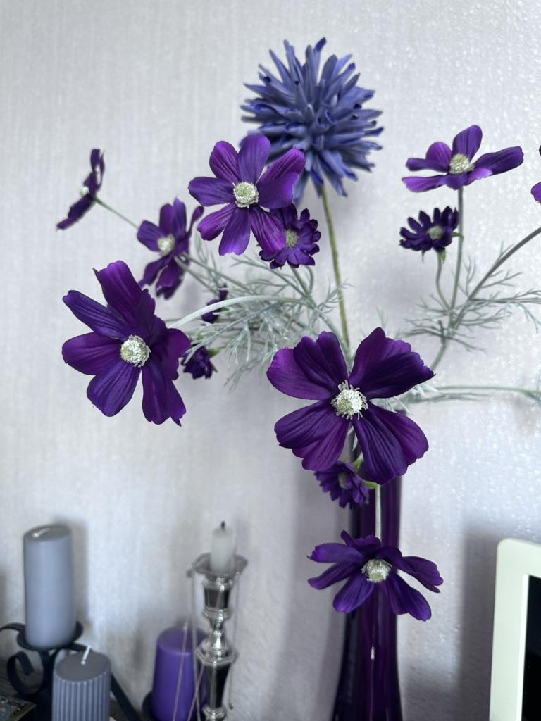 Cosmea. Like natural. Not cheap. But I don't regret it. To go with the purple one I ordered a sprig of pink. I am waiting.