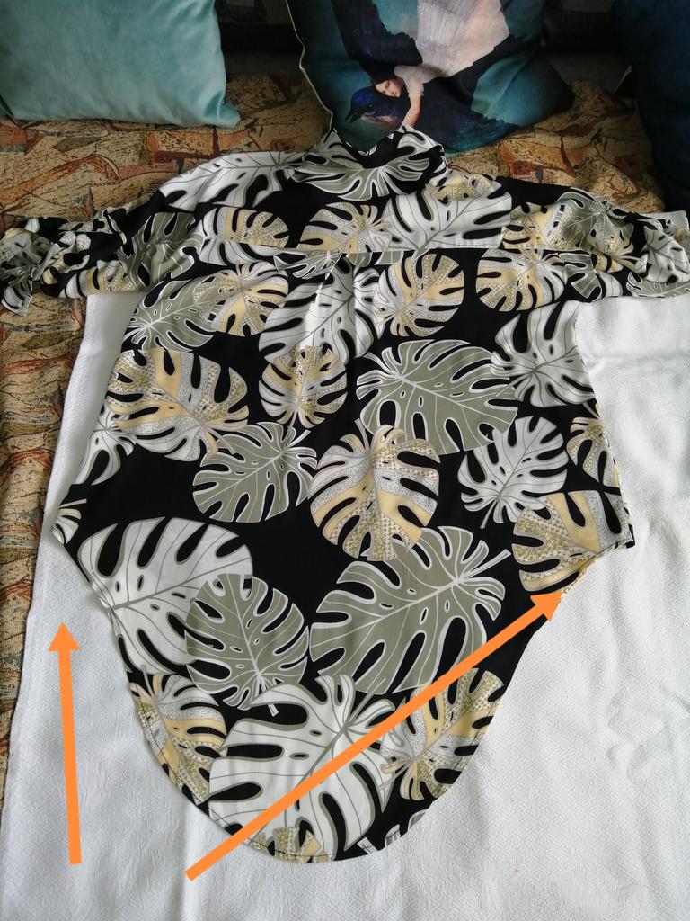 Great sweatshirt, lightweight fabric. I had to put my hands a little: I shortened the hem at the back by 10 centimeters. (The tail is too long)