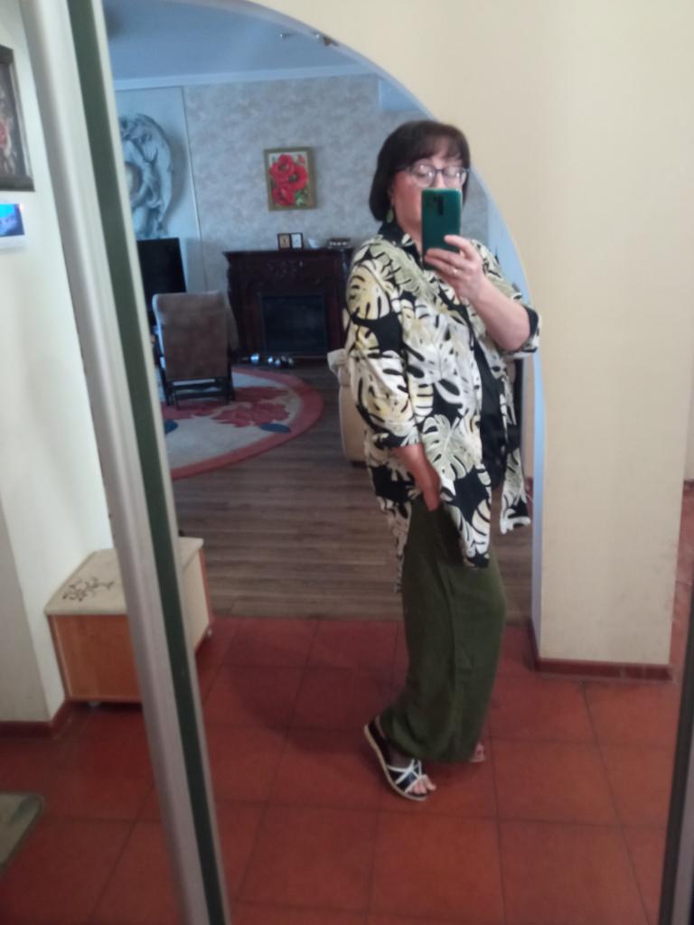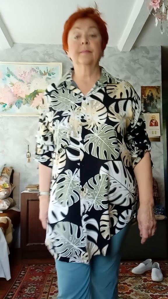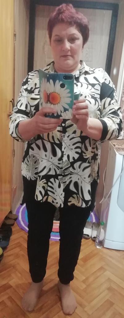 Normal for my 50th, oversized, would also fit 2 sizes larger ladies. The quality is very nice💖, looks like viscose, looks stylish👌. But shorter than I expected. My height is 167. I am surprised that the order arrived almost on time. War is all around... There is no way I can comprehend the horrors brought to our lives by the accursed 👹"Russian measure".