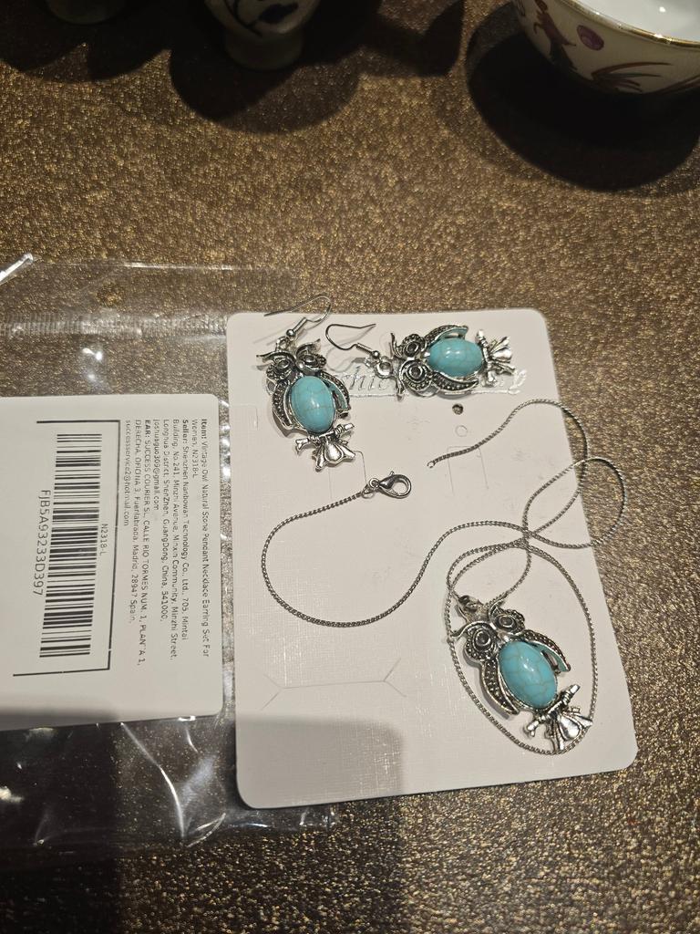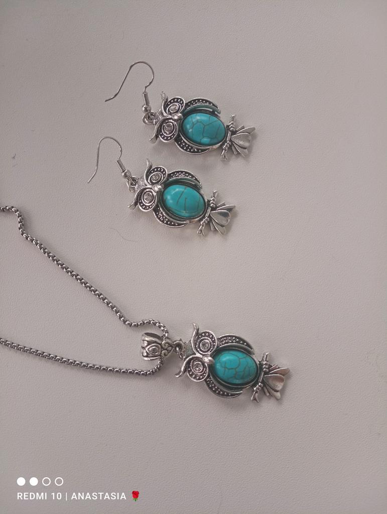Vintage Owl Natural Stone Pendant Necklace Earring Set For Women