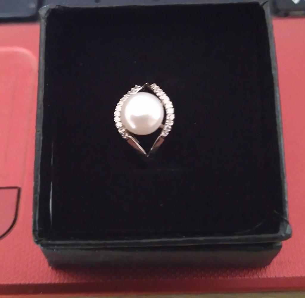 The package with the product was apparently opened, as it was sealed on top with ordinary tape. Joom products do not have such packaging. There are also doubts about the freshwater pearl. The description states that the size of the pearl is 8-9 mm. In my ring, the pearl is small, its size does not even reach 7 mm.