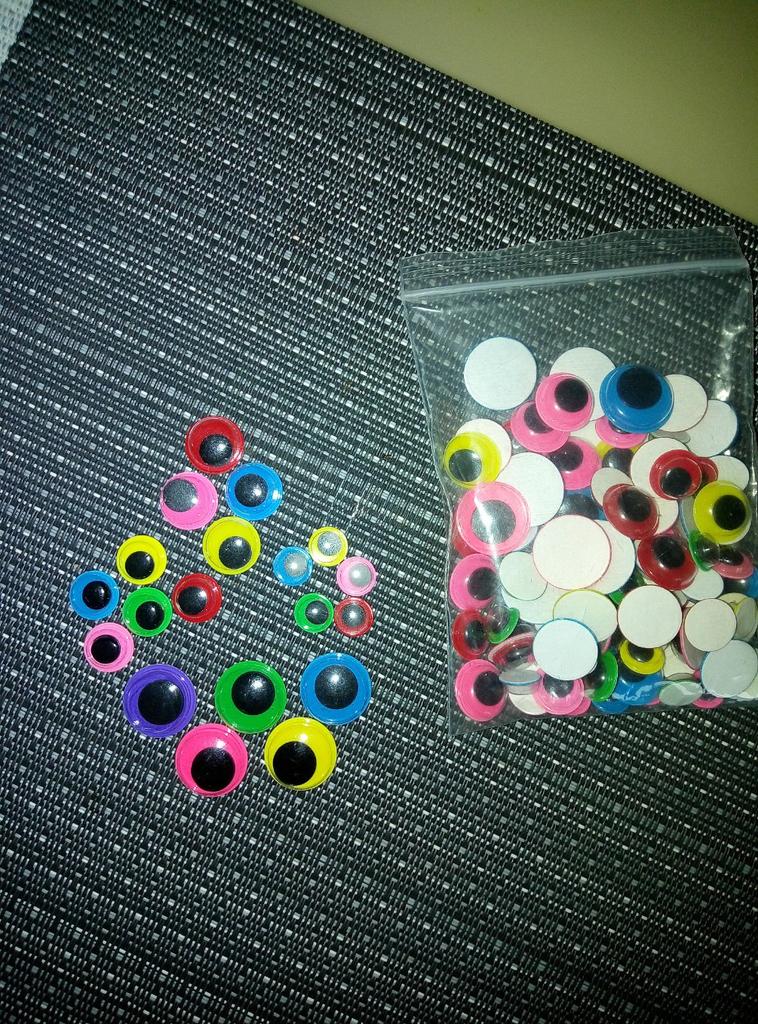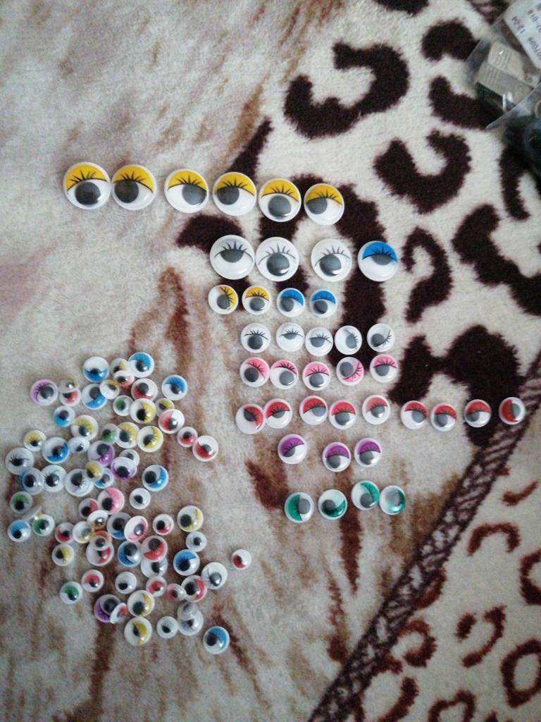 Eyes of different sizes and colors, do not stick very firmly ..
