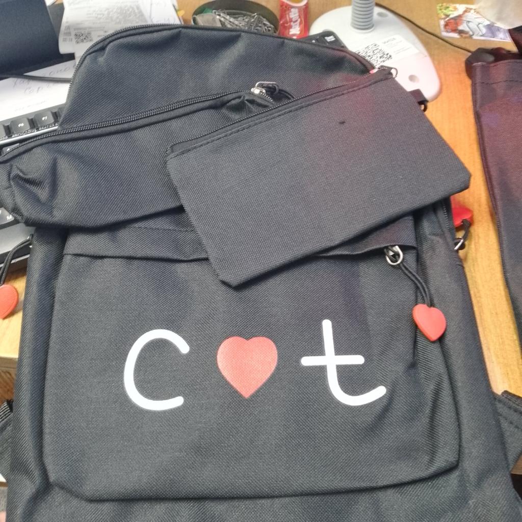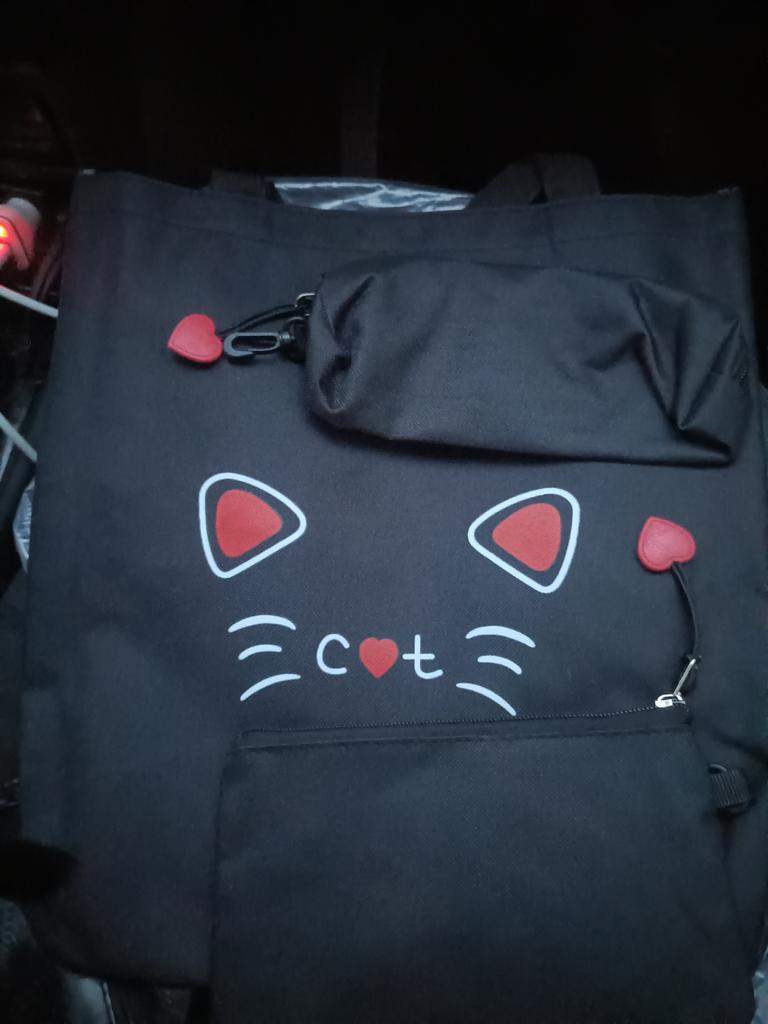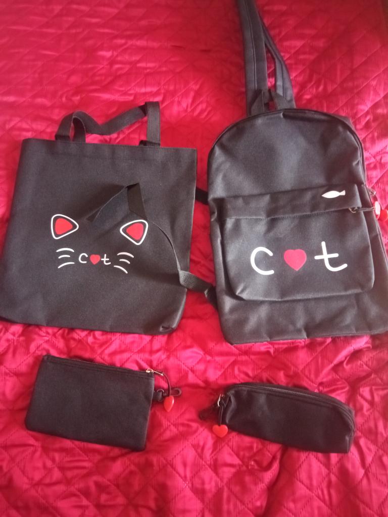 The handbag has no lock and is dirty inside, but the backpack and two pencil cases are good.