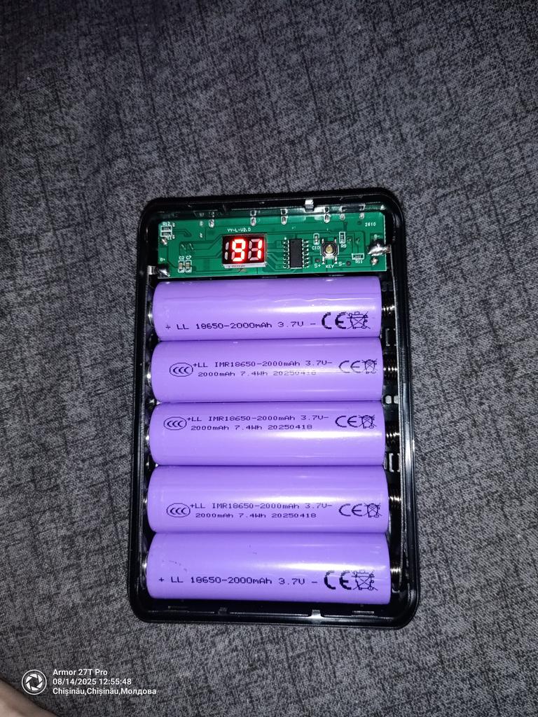 The case is not bad, but there is no quick charge (QC) function. An ordinary bank. Installed original Sanyo NCR 3400 cans.