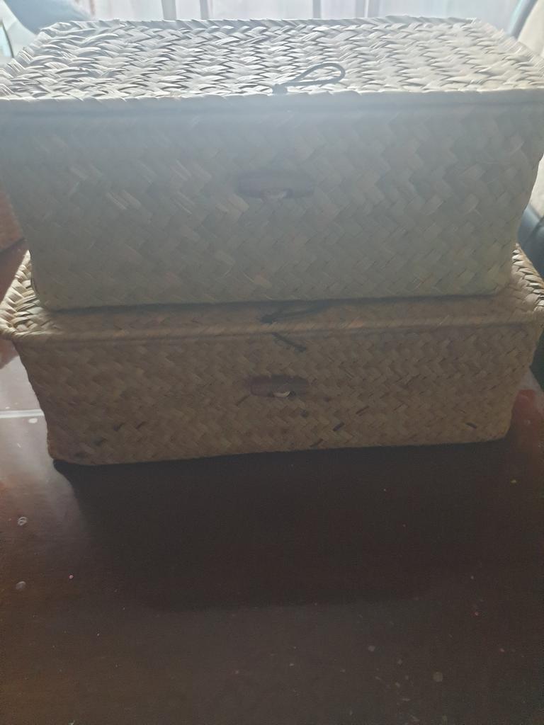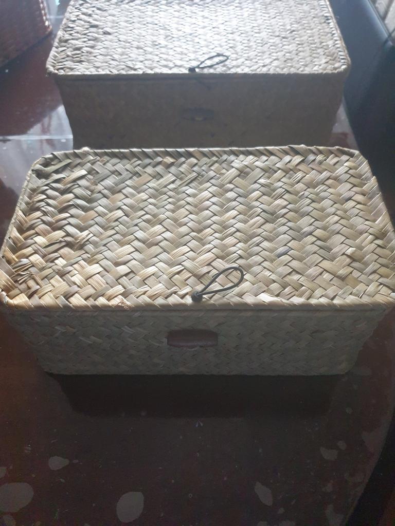 WCIC Home Hand-Woven Seaweed Storage Basket Seagrass Braided Lid Storage Box With Portable New