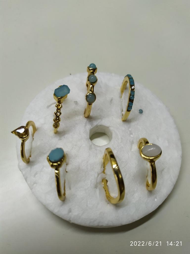 Colorful Stone Rings Set for Women Girls Trendy Metal Geometric Square Round Rings Jewelry Gifts Accessories