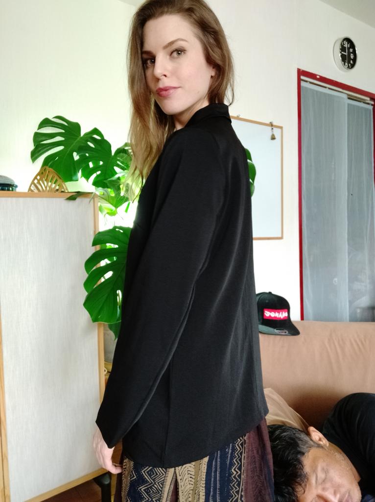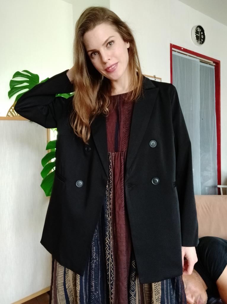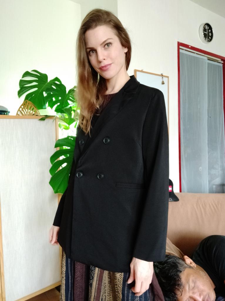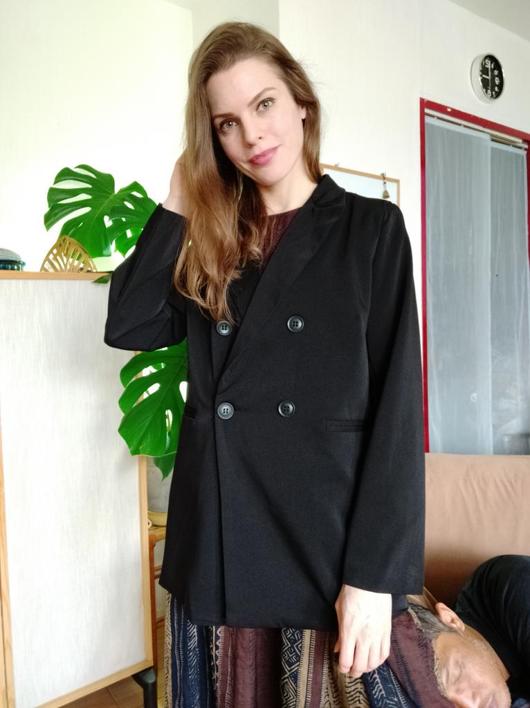 Great suit jacket. I bought it for the second time. The previous I bought in my regular size S, but the sleeves where a bit short. This is size XXL, which turned out a bit too big 🫣.. When you are 170 cm or taller, I advise you to take at least size M or L and for the other measurements follow the size table! 😘😘