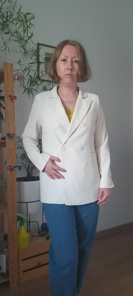 Nice classic jacket, too bad it's not my size 🥲 Please note that this is a very small size, I took size M and it is like XXXS on me 😅, small in the shoulders, sleeves and even in the chest area there is discomfort. My settings Height 175 cm Bust 79cm Waist 59 cm Therefore, if you plan to take it, I advise you to go 2-3 sizes larger than yours. The fabric feels budget, unfortunately I do not know the detailed composition of the material, the seller indicated - cotton and polyester I don't know if I can call this purchase a success because of the size, I'll say 50/50