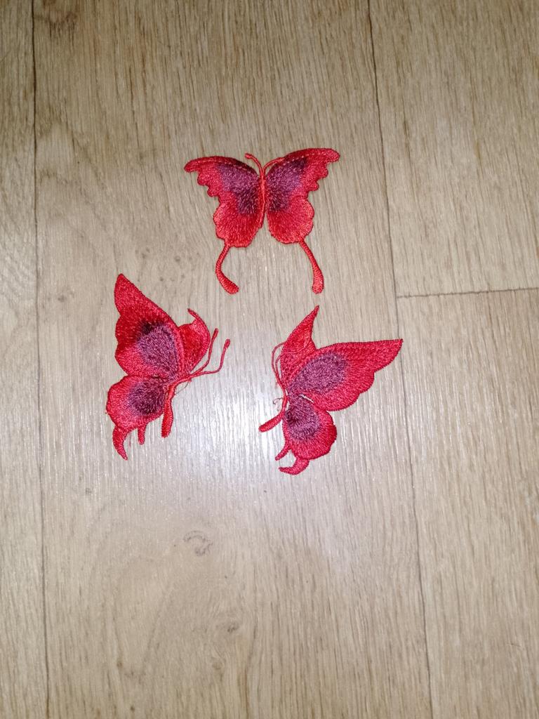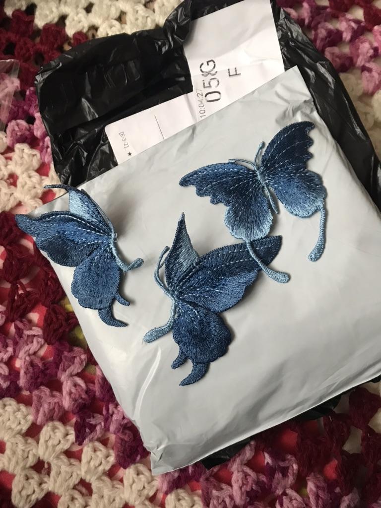Butterflies are beautiful. Haven't sewn them on anywhere yet. They will suit either a denim jacket or jeans.