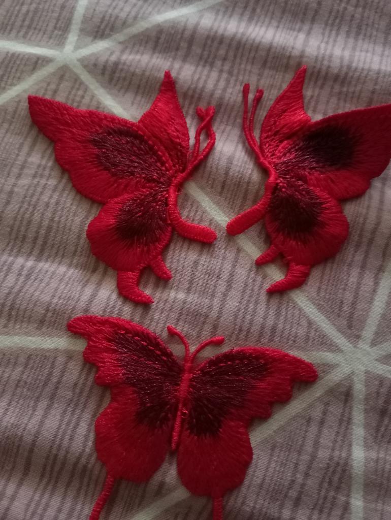 Beautiful embroidered butterflies. It is necessary to sew, they do not have an adhesive backing.