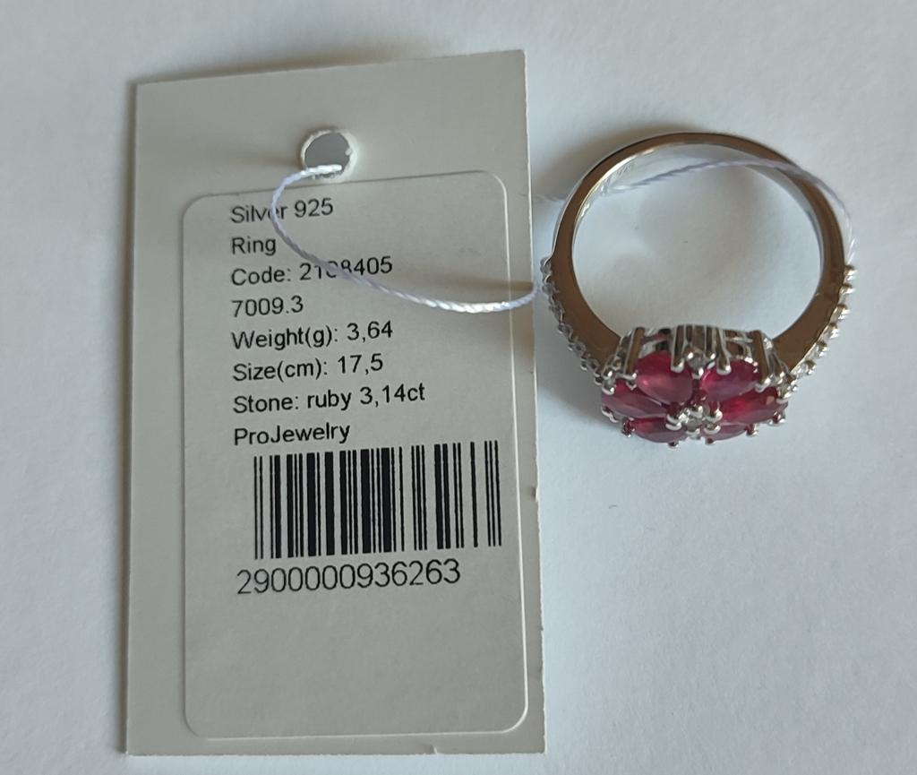 silver ring with natural ruby 3.14ct, item weight 3.83 g