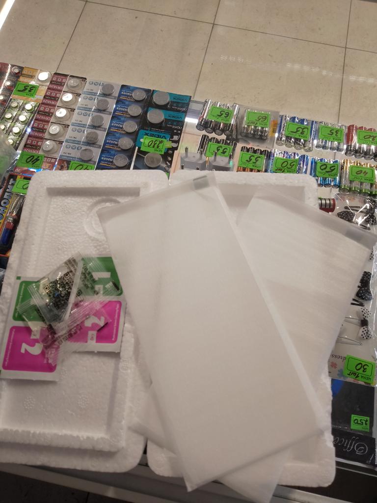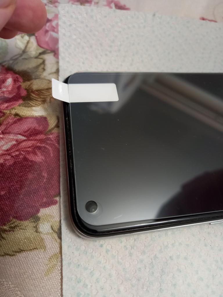 Glass, cheap does not cover the entire screen, there is a hole for the camera