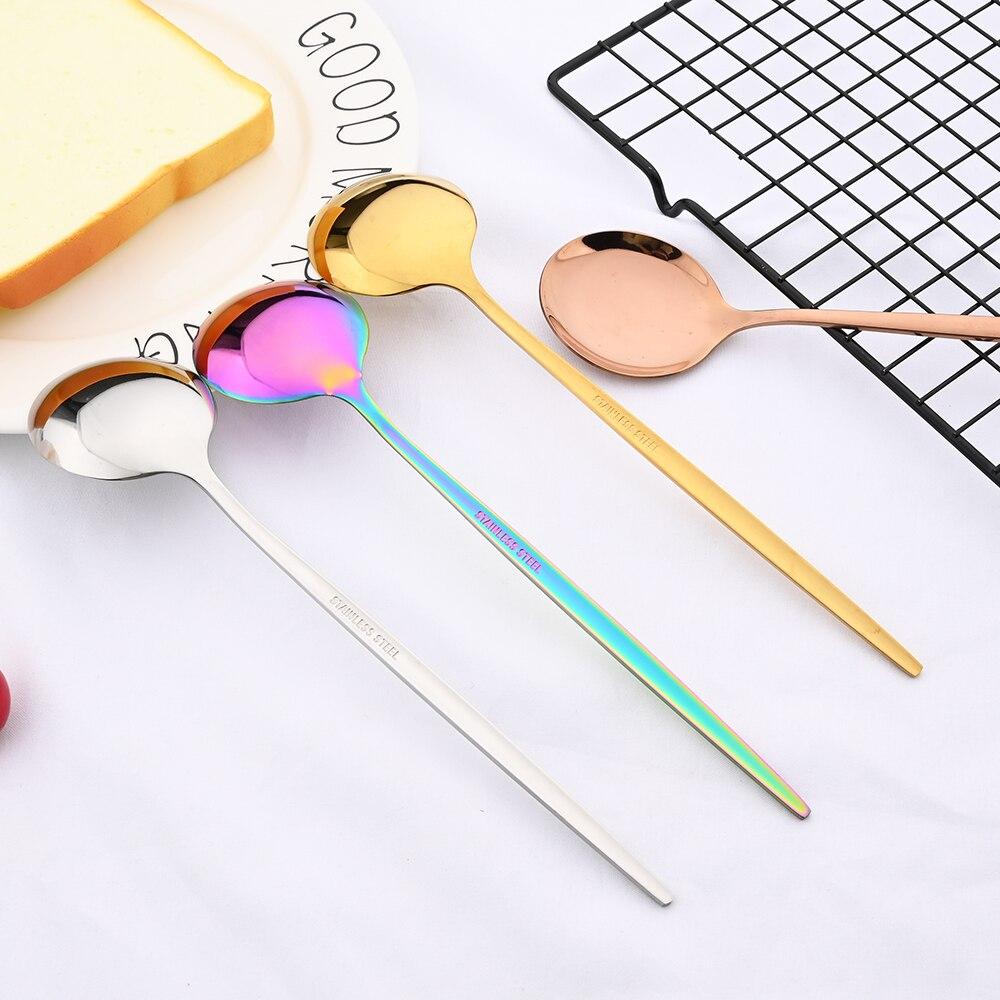 6Pcs Colorful Dinnerware Cutlery Spoons Set Long Handle Mirror Stainless Steel Spoon Flatware Tableware Kitchen Accessories