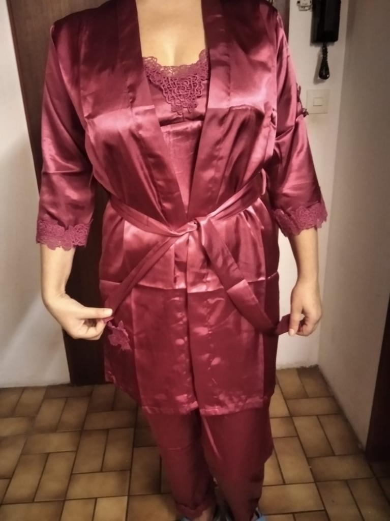 Just a chic set: you can sleep and just walk around the house. At 44 I took xxl, freely, everything is on elastic bands, very comfortable, does not press anywhere.
