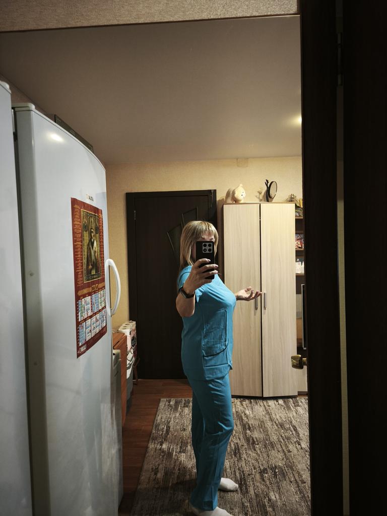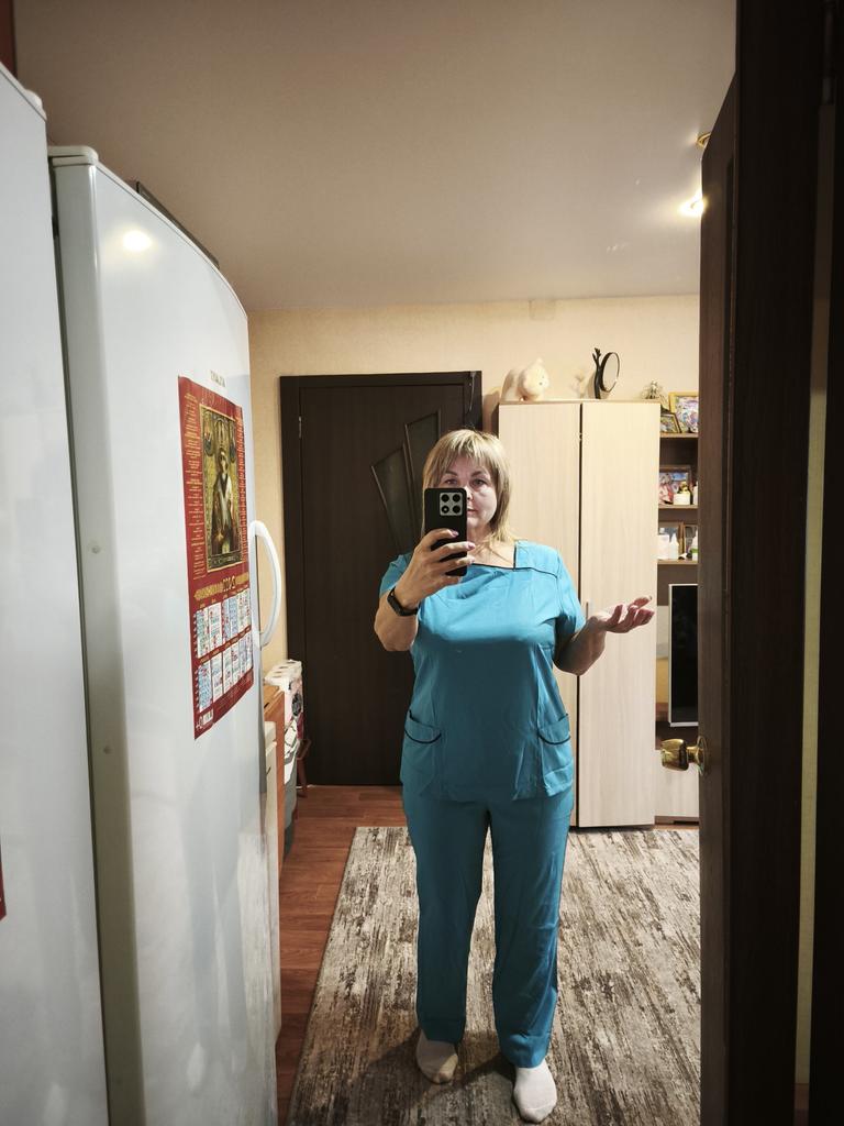 I am very pleased, light, gentle, took it for trimming dogs, the hair does not stick, for size 48-50 I took L, loose, comfortable, thank you very much!