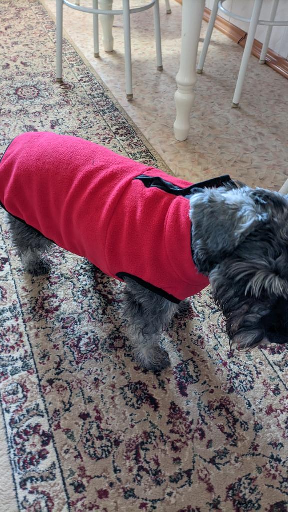 High-quality sewn, soft fleece. A dog weighing 5 kg was suitable for size M. Everyone is satisfied!