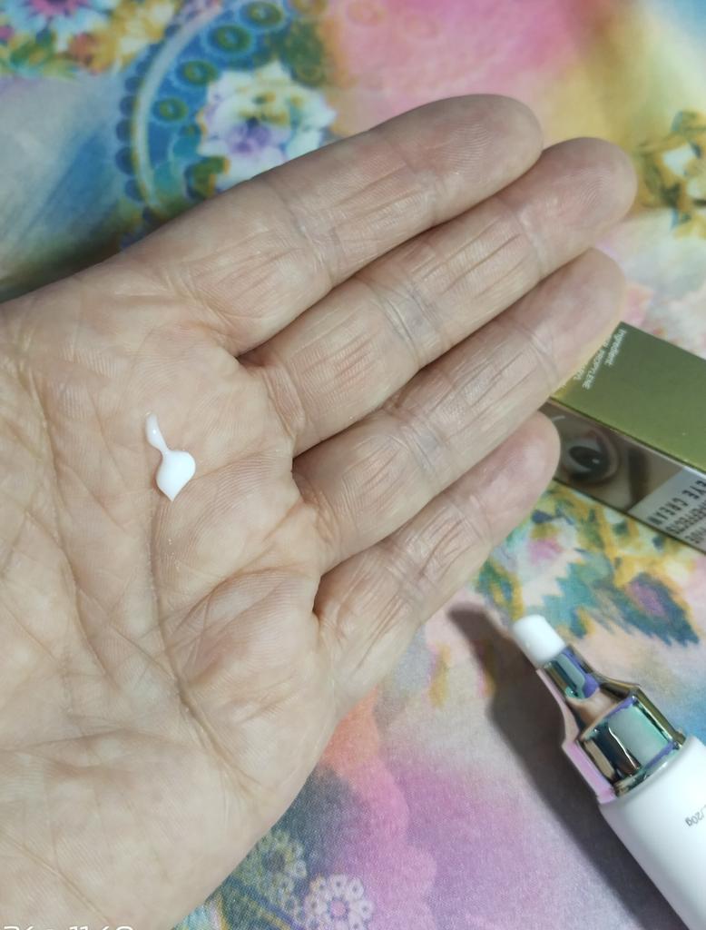The texture is silky, the cream is very delicate. Above all, it does not penetrate the eye over time.. I have used it for 2 days, and we will see the results