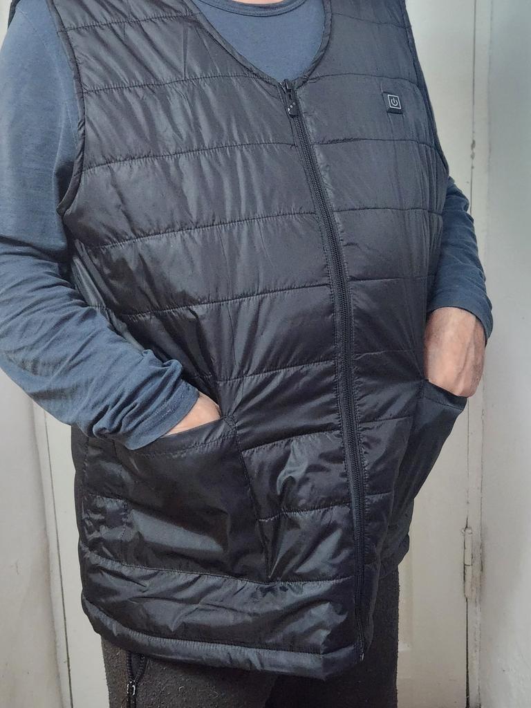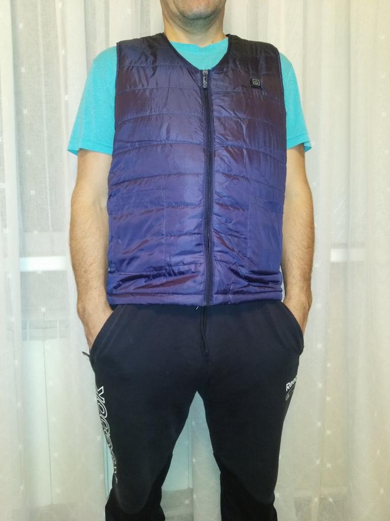 A very good vest, light, except for the battery (power bank). Warms well, the heat is soft, not intrusive in the right, freezing places. To turn on / off hold the button for about 3 seconds!