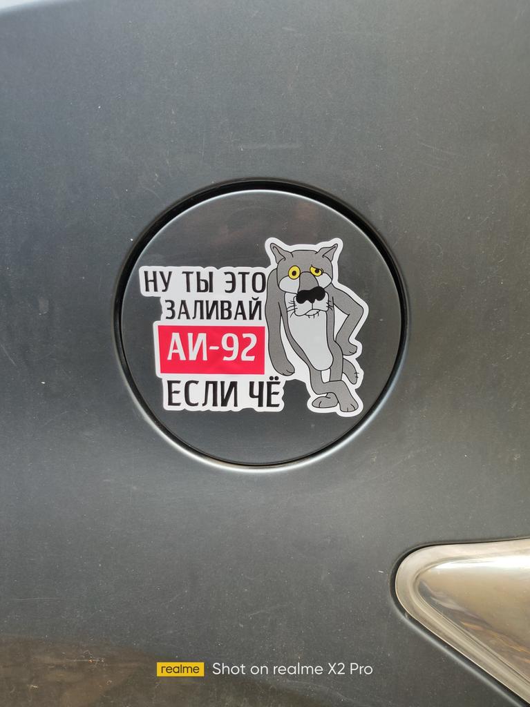 Super sticker. But it's too big for my car. The lid of the tank is round, and the sticker is better suited for a rectangular one.
